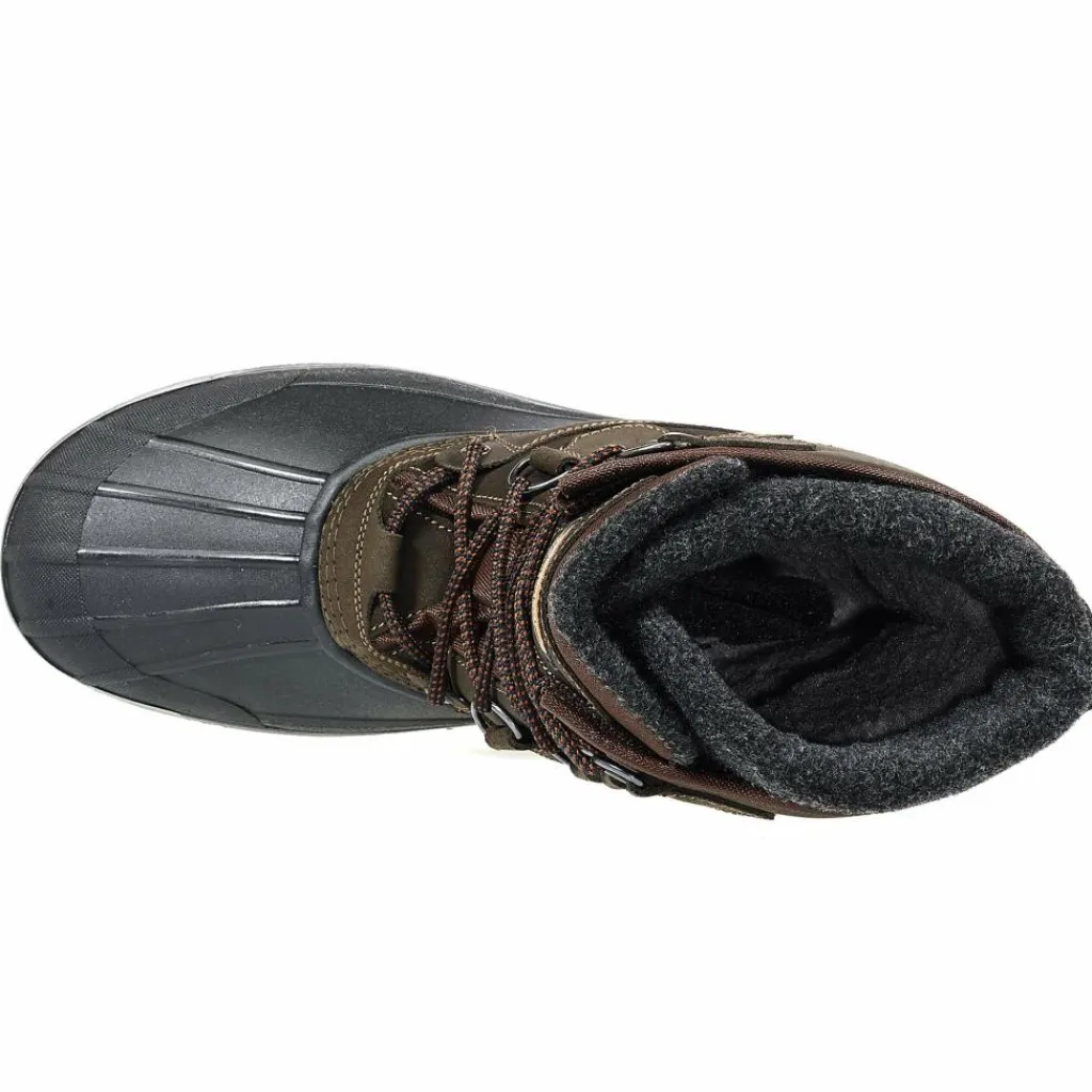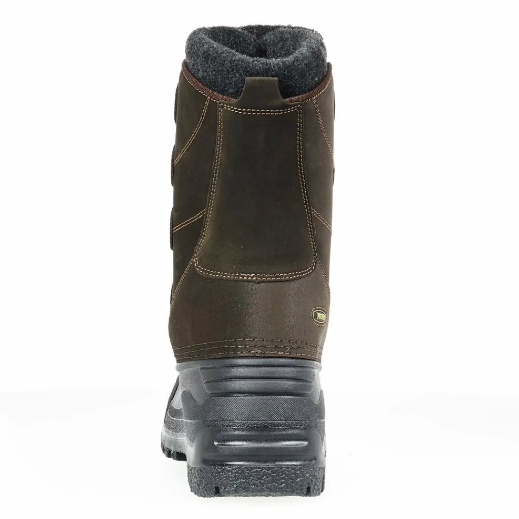 Wo bei anderen Modellen einfach gearbeitete Schlupfschuhe zum Einsatz kommen, überzeugt der Innenschuh dieses Winterstiefels mit ganz besonderem Komfort. Die Form ist passgenau gearbeitet; Fersenbereich und Auftrittsfläche sind zusätzlich verstärkt. Das Obermaterial des Innenschuhs zeigt sich besonders strapazierfähig und mit festem Griff. Das innen verarbeitete Teddyfleece liegt herrlich weich und warm am Fuß. Der Schaft schließt mit einem kräftigen Kunstfilzkragen ab. In der Weite lässt sich der Innenschuh dann auch noch regulieren: mit einem breiten Klettriemen über dem Schienbein.