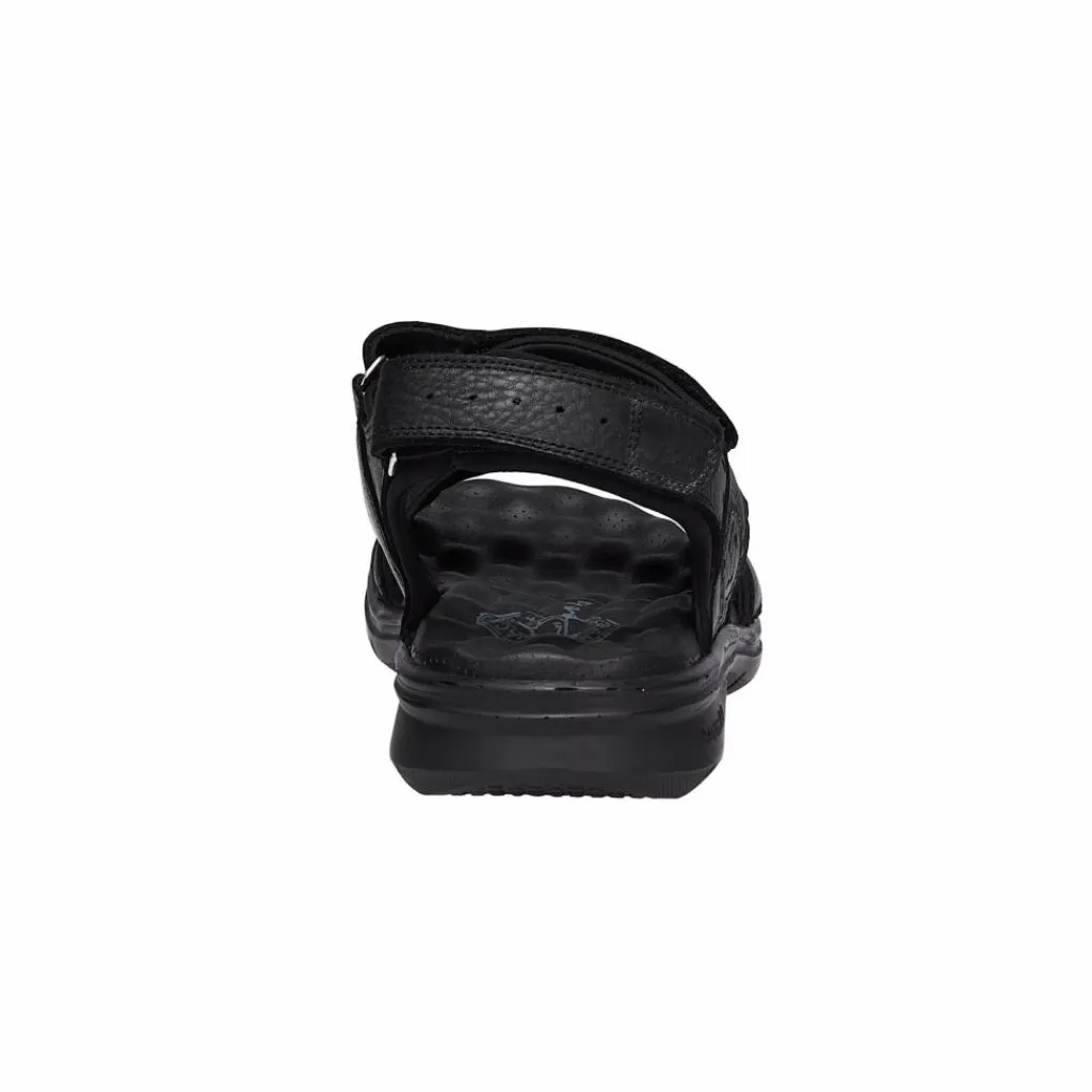 Beim Obermaterial wird größtenteils auf solides geöltes Vollnarbenleder gesetzt. Das Material ist besonders robust und dank des geölten Finishs bleibt die Sandale auch lange schön anzusehen, da das Leder durch diesen Kniff wesentlich weniger schnell austrocknet. Als Futter kommt weiches Synthetikmaterial zum Einsatz. Die weich gedämpfte Innen- und Zwischensohlenkonstuktion spendet auch an langen Tagen hohen Komfort.