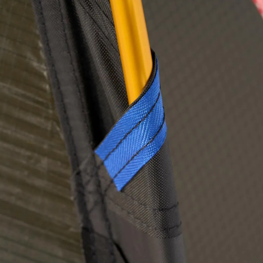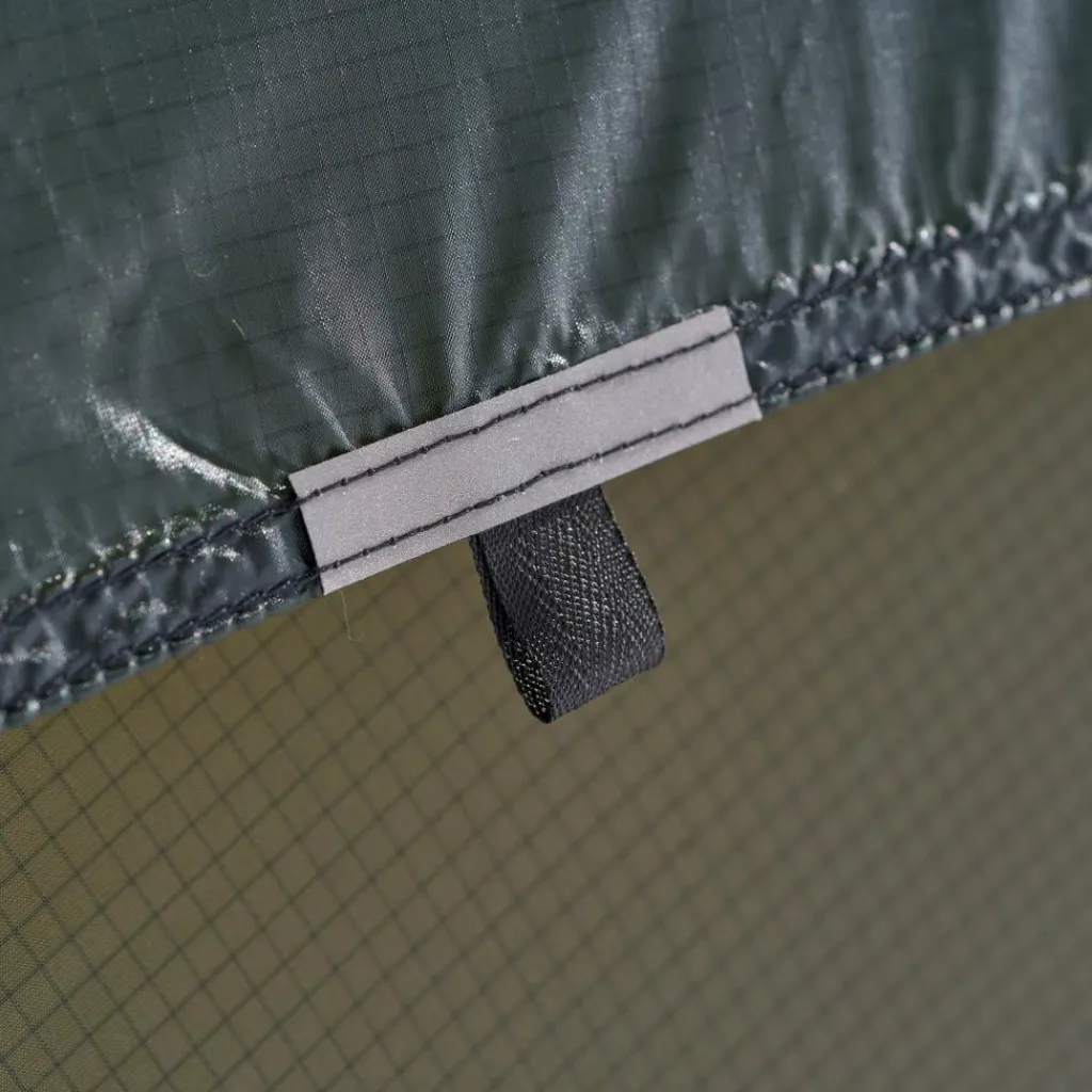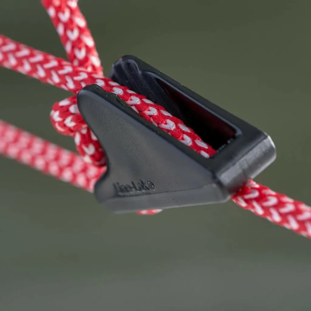 Die farbcodierten, halbhohen Gestängekanäle helfen dir die Stangen bei widrigen Bedingungen richtig zuzuordnen. Anschließend wird das Außenzelt mit Kunststoffclips am Gestänge befestigt und die Lüfterhaube über dem Dachlüfter befestigt. Sollte der Wind pusten, kannst du das Zelt mit 12 Heringen sicher im Boden verankern.