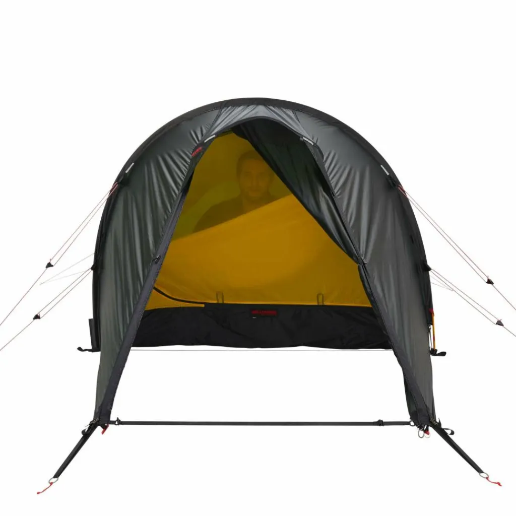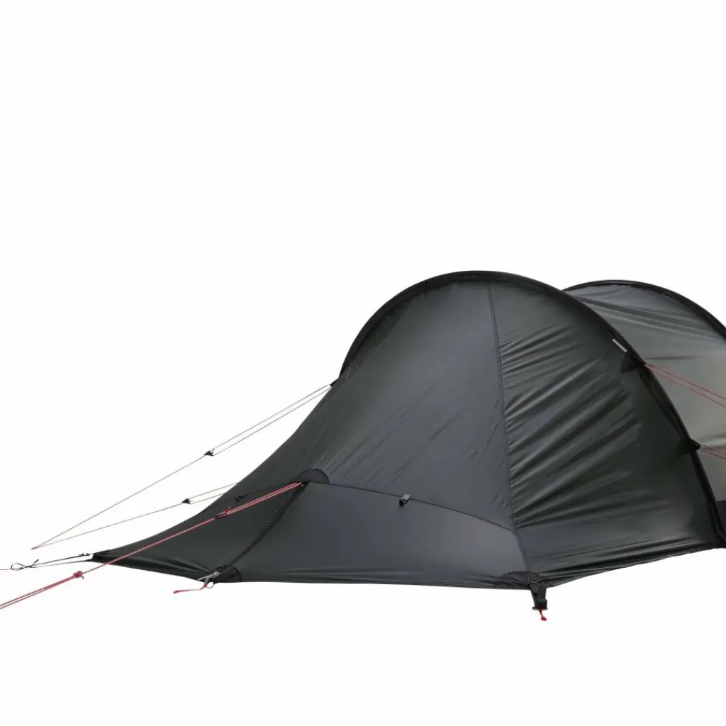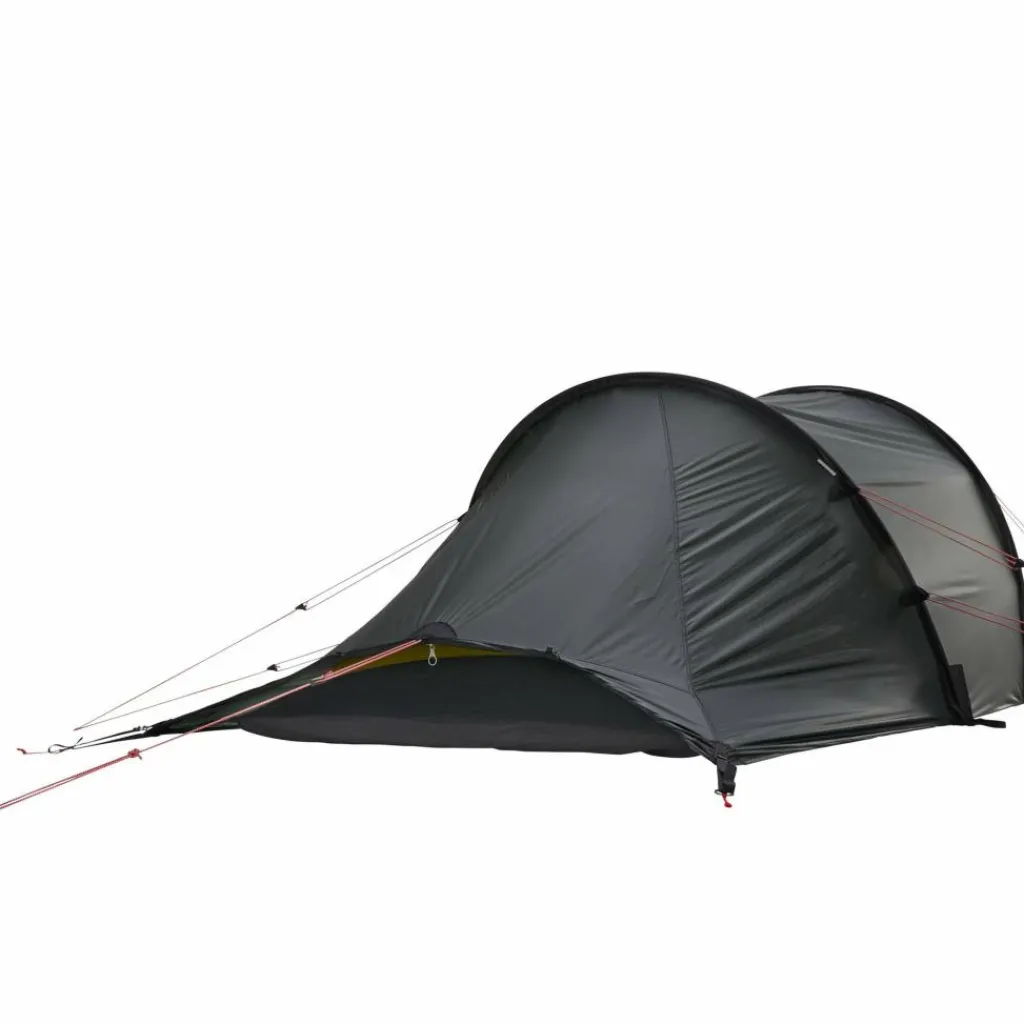 Ein ganzjährig und auch unter extremen Bedingungen einsetzbares Tunnelzelt. Durch die Form und Materialauswahl ist es sehr leicht und bietet zwei Personen und Gepäck Platz.
