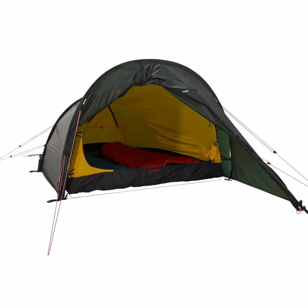 Ganzjährig einsetzbares Zelt aus der Red Label Serie. Die Nallo-Zelte sind die Leichtgewichtsversionen der Nammatj-Reihe. Unterschiedlich lange Bögen (abfallender Tunnel) machen sie jedoch windschnittiger, leichter und bieten im Eingangsbereich trotzdem viel Bewegungsfreiraum. Die Belüftung erfolgt über einen Lüfter in der Front. Durch seine hohe Lage funktioniert er auch einwandfrei bei einem teilweise im Schnee eingegrabenen Zelt und lässt sich zudem über den Eingang (2-Wege-RV) erweitern. Das Fußende des Außenzeltes kann für bessere Belüftung aufgerollt werden.