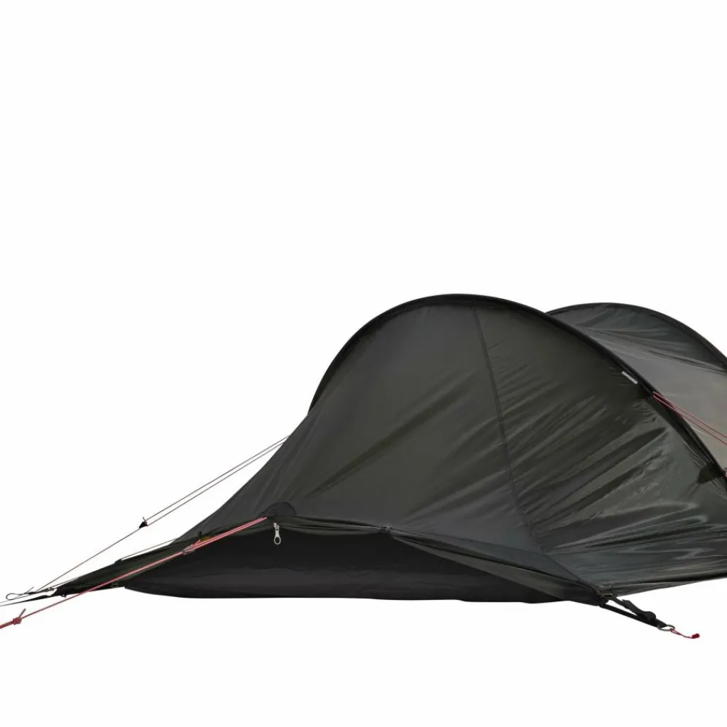 Tunnelzelt für drei Personen. Die abfallende Konstruktion und die perfekt abgestimmte Materialauswahl, macht es zu einem leichten und dennoch ganzjährig einsetzbarem Zelt.
