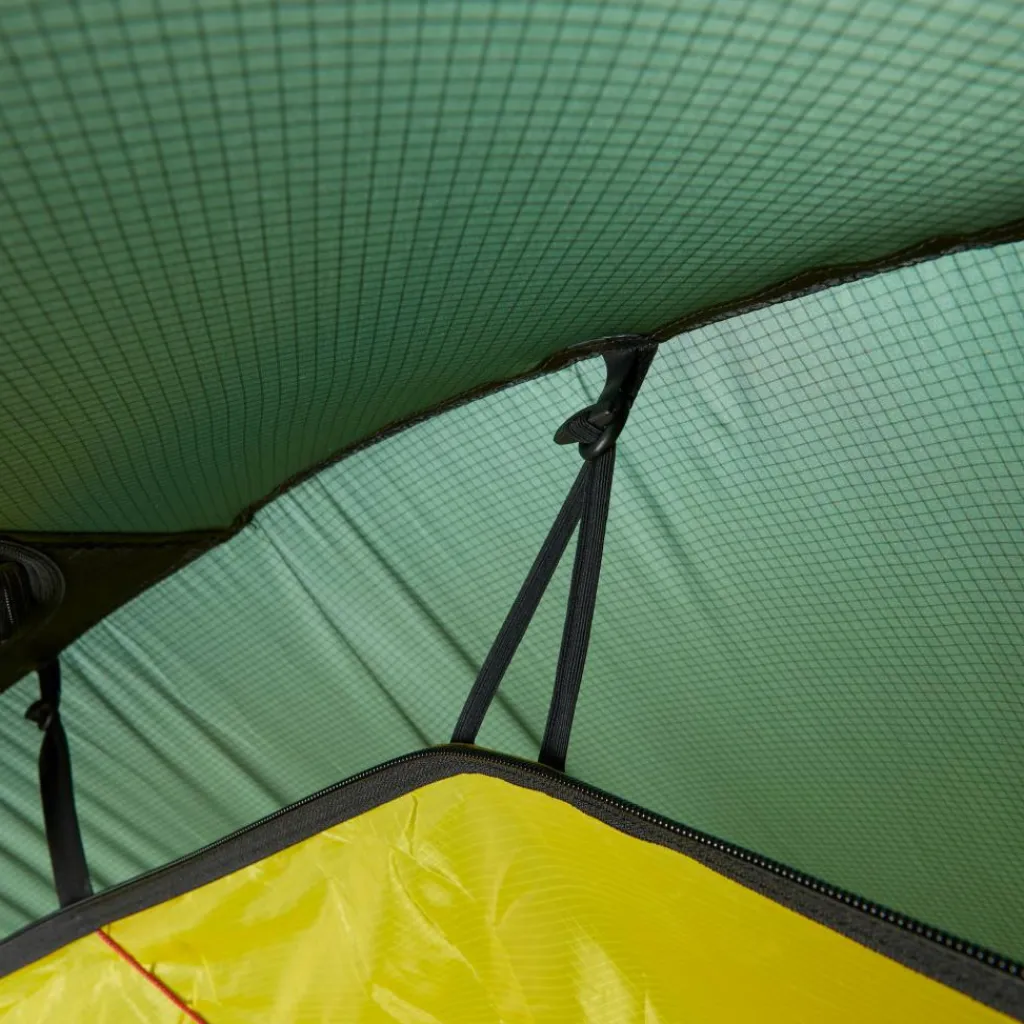 Als Material wird Kerlon 1200 Gewebe verarbeitet, das eine Weiterreißfestigkeit von 12 kg besitzt. Das Gestänge ist 9 mm dick und somit für normale Schneefälle und starke Herbststürme ausreichend gewappnet. Das Außenzelt reicht bis zum Boden, damit kein Schnee zwischen Innen- und Außenzelt geweht werden kann. Mindestens ein hoch angebrachter Lüfter lässt die Luft im Zelt gut zirkulieren.