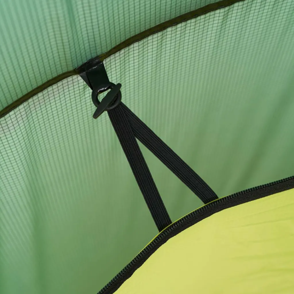 Auch im Innenzelt lässt es sich gut aushalten. Es bietet zwei bis drei (auch großen) Personen ausreichend Platz zum Sitzen und Liegen. Vier Netztaschen verstauen Bücher, Lampen, Smartphone und anderen Kleinkram. Auch praktisch: Deine feuchte Wäsche kannst du auf der im Innenzelt gespannten Wäscheleine zum Trocknen aufhängen.