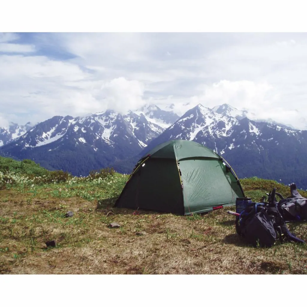 Dieses völlig freistehende Kuppelzelt ist der ideale Begleiter für Ganzjahrestouren. Durch die Konstruktion kannst du es auch ohne Heringe aufbauen und bist dadurch bei der Platzwahl sehr flexibel.