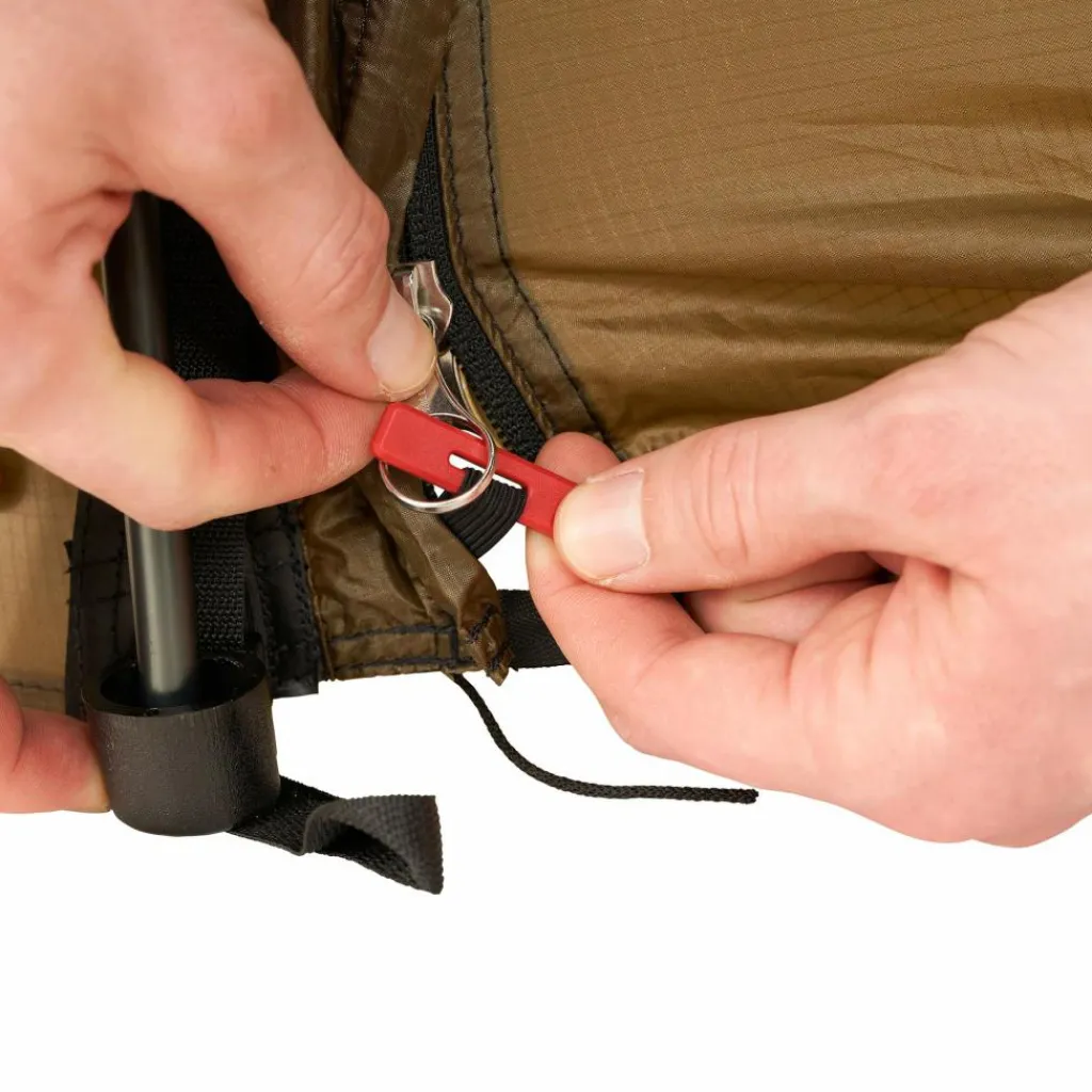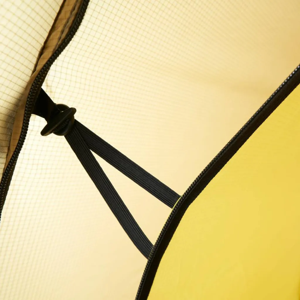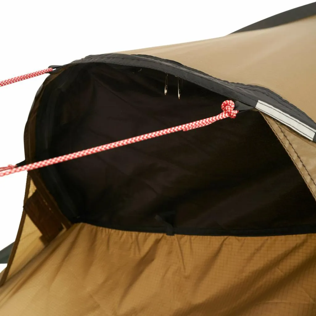 Zwei Apsiden mit je einem Eingang können entweder als Eingang oder Stauraum genutzt werden. Der seitliche Apsiden-Eingang lässt sich separat mit Moskito-Gaze verschließen. Zudem ist er abgerundet, sodass sich kein Regenwasser auf der Naht sammeln kann. Die Apsis bietet ausreichend Stauraum für Ausrüstung. Benötigst du jedoch mehr Platz, so ist das Keron auch in der erweiterten GT-Version verfügbar.