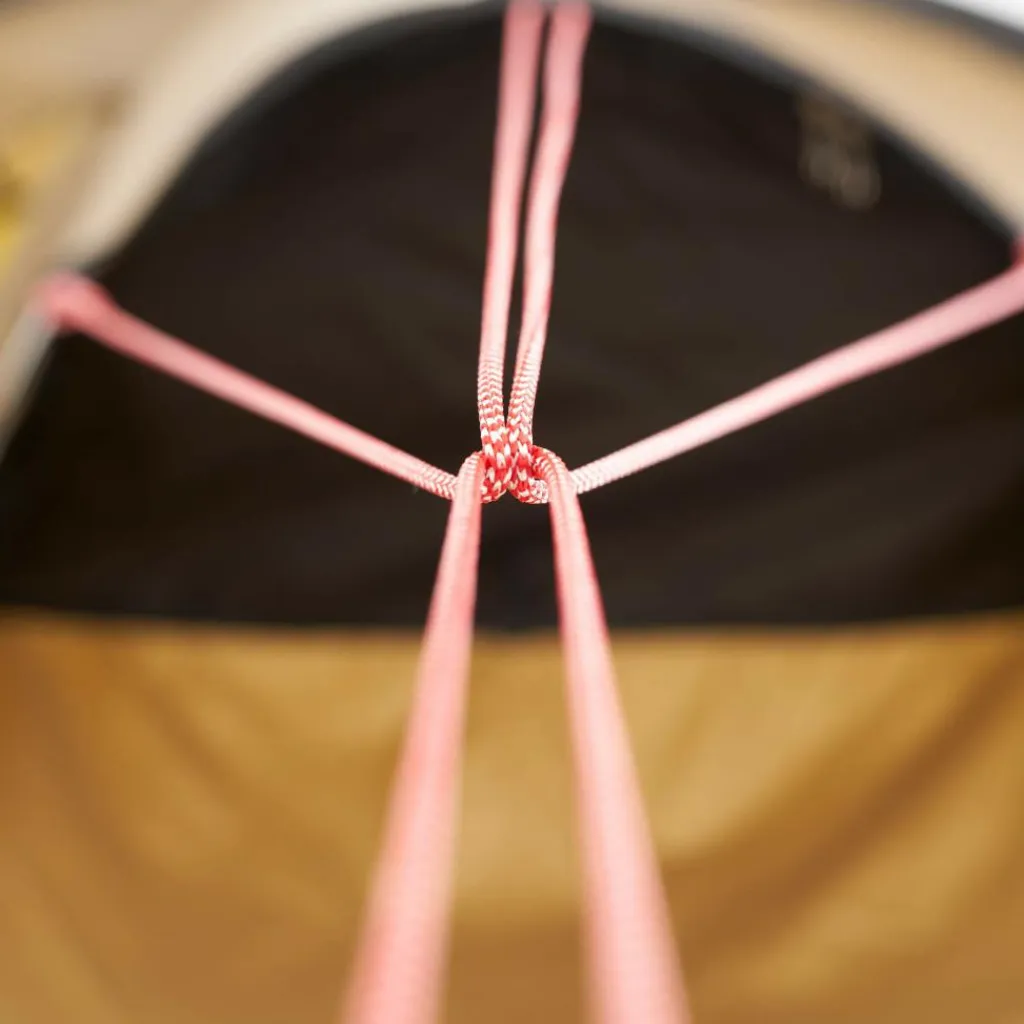 Das Innenzelt bietet zwei bis drei (auch großen) Personen ausreichend Platz zum Sitzen und Liegen. Vier Netztaschen verstauen Bücher, Lampen, Telefon und anderen Kleinkram. Auch praktisch: Deine feuchte Wäsche kannst du auf der im Innenzelt gespannten Wäscheleine zum Trocknen aufhängen.