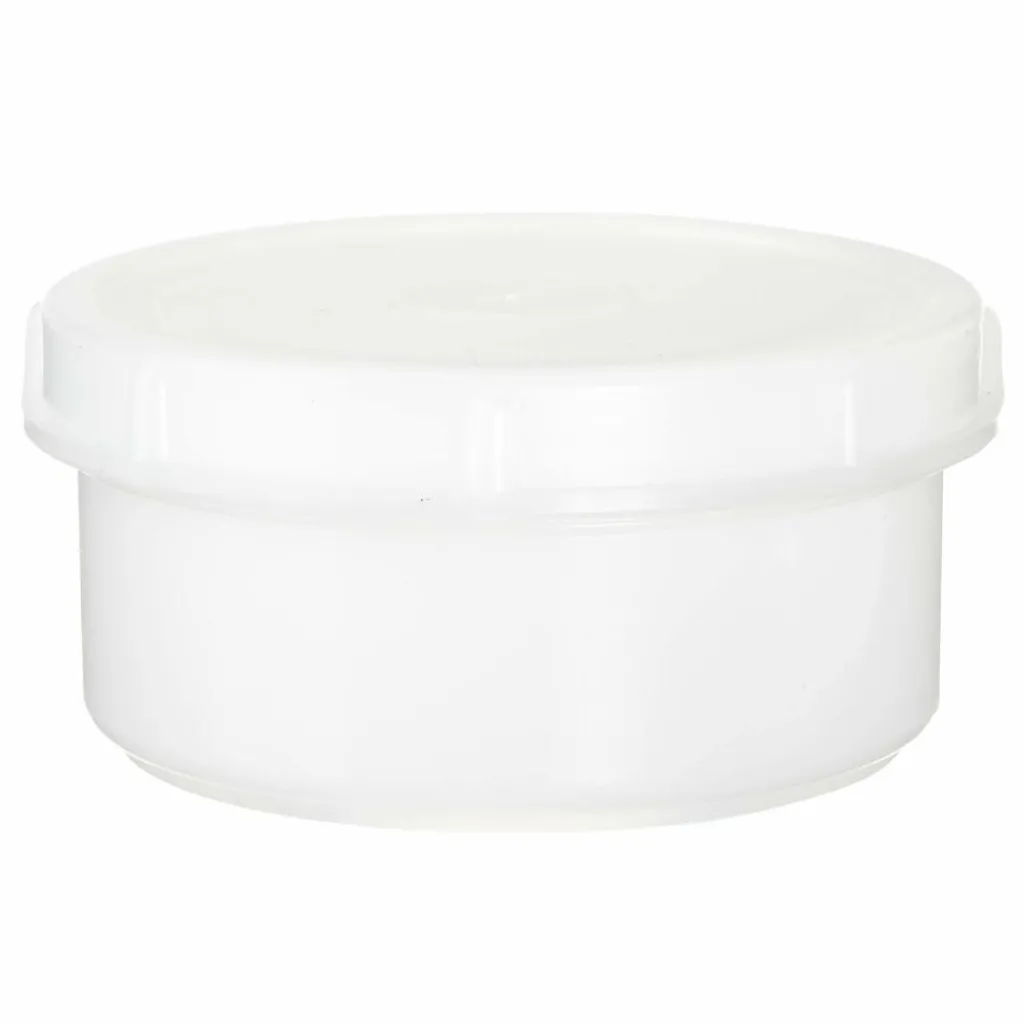 Dose mit großer Öffnung aus Polypropylen. Leicht zu befüllen, auslaufsicher verschließbar, lebensmittelecht und hergestellt in Deutschland.