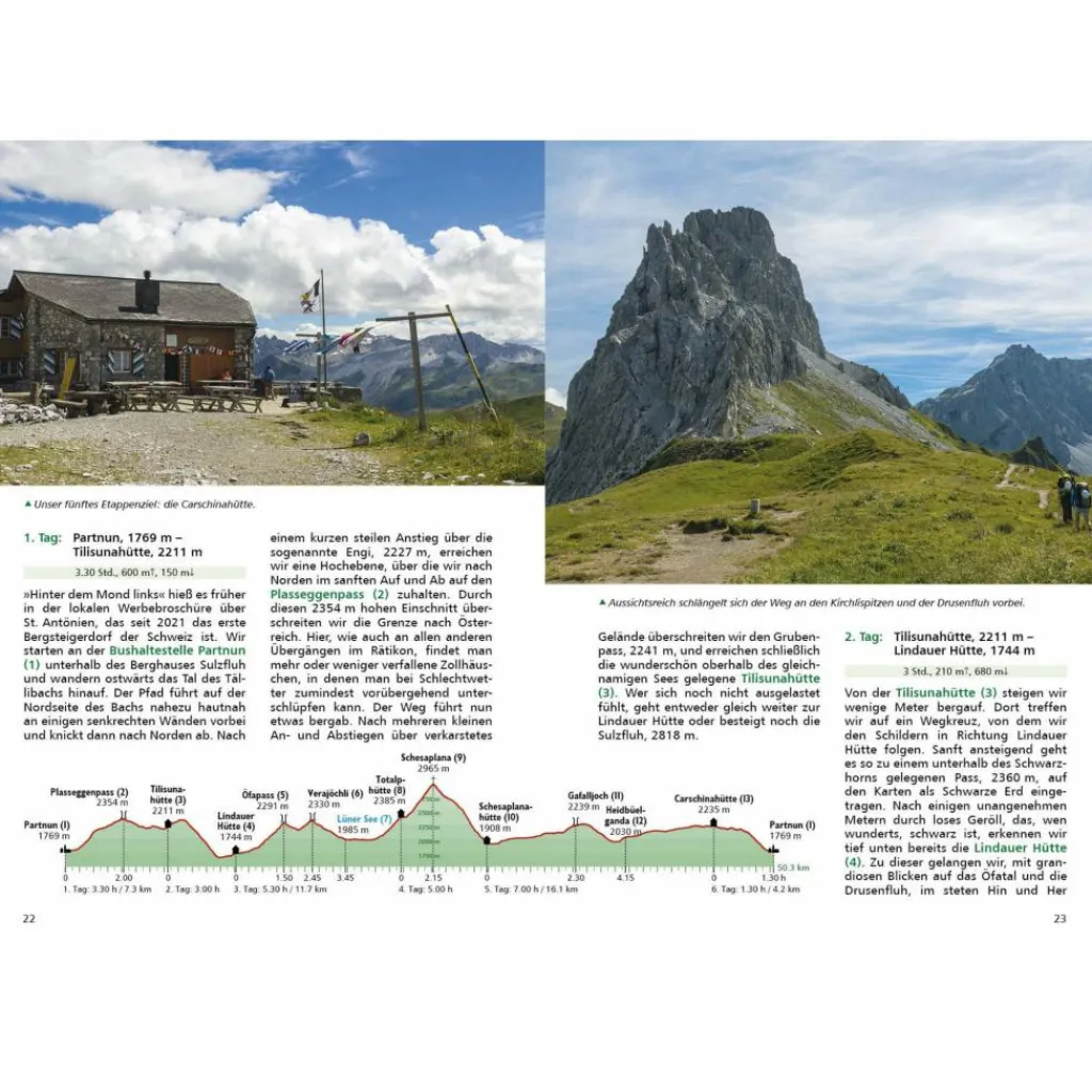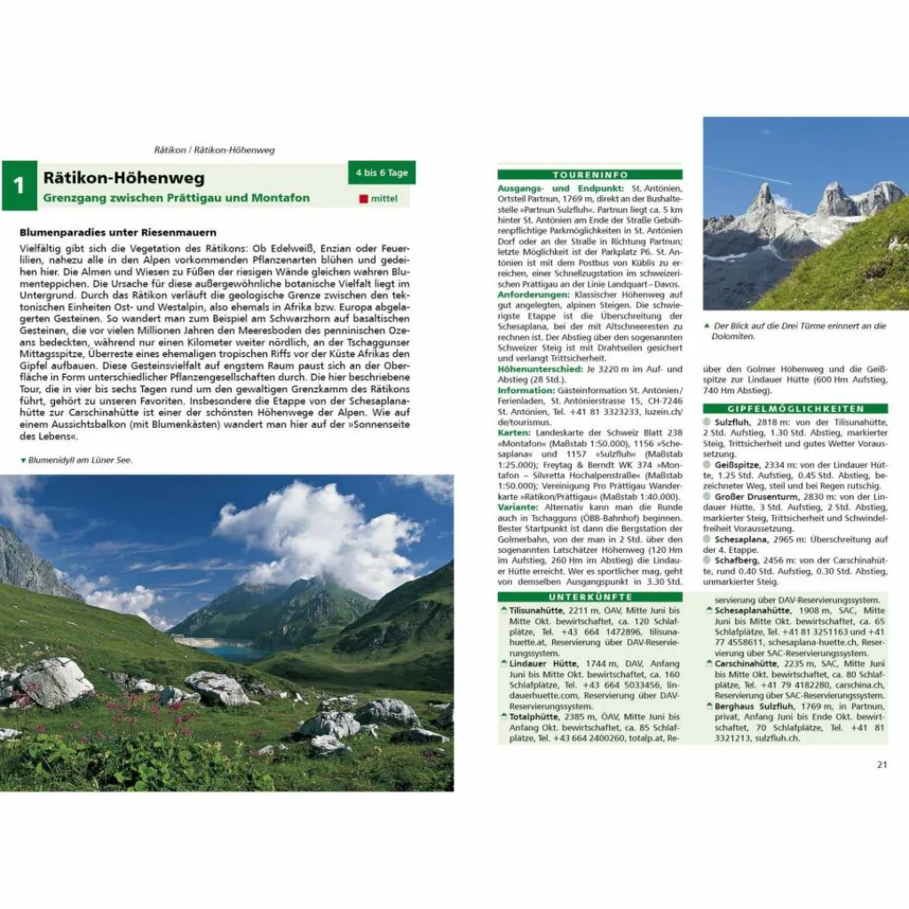 Jede Hüttentour wird mit allen wichtigen Infos präsentiert: Eine zuverlässige Wegbeschreibung, ein Höhenprofil und eine Wanderkarte mit Routenverlauf machen jede Tour leicht nachvollziehbar. Geprüfte GPS-Tracks machen die Orientierung unterwegs einfach. Die Hütten wie auch mögliche alternative Unterkünfte werden mit allen Angaben vorgestellt. Eine übersichtliche Kurzinfo liefert alles Wichtige und Wissenswerte zur Tour auf einen Blick.