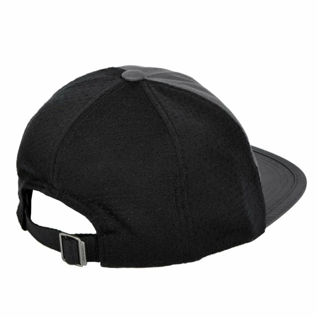 Aufgrund ihrer sehr langen mittleren Verweilzeit in der Atmosphäre haben alle Perfluorcarbone, ähnlich wie die Fluorchlorkohlenwasserstoffe (FCKW), sehr hohe Treibhauspotentiale. Sie sind ebenso im menschlichen Blut nachweisbar. Darüber hinaus wurden sie inzwischen in entlegenen Gebieten wie der Arktis und der Antarktis gemessen und gelten als klimarelevant.“>PFC-freien DWR-Imprägnierung versehen. Damit ist die Cap in diesem Bereich wind- und wasserabweisend. Am Hinterkopf sorgt Mesh-Gewebe aus Merinowolle für ein angenehmes Trageklima. Die Weite lässt sich per Schnürzug mit Schnalle hinten passgenau einstellen.