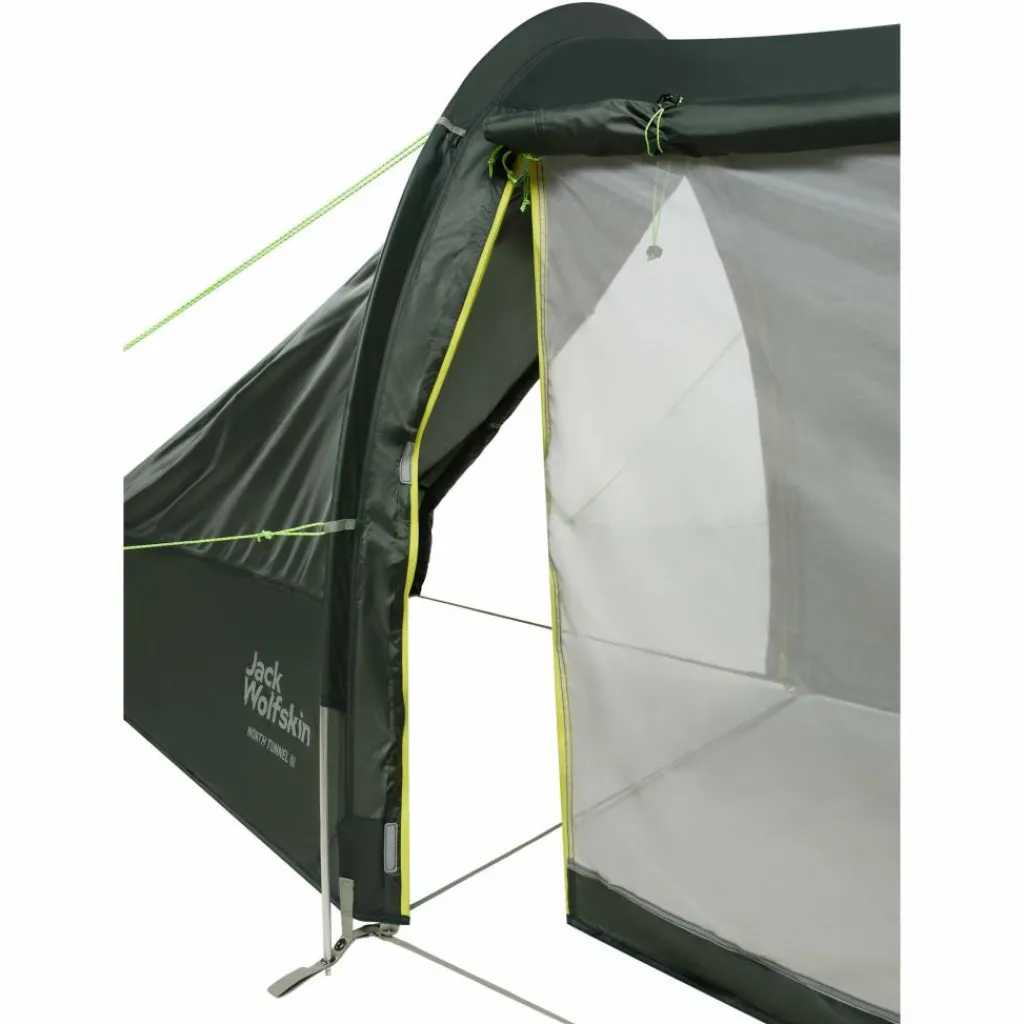 Dank des innovativen Designs des NORTH TUNNEL 3 lässt sich das Gepäck vom Schlafbereich getrennt aufbewahren. So kannst du das Zelt betreten oder verlassen, ohne über einen Rucksack oder andere Ausrüstung zu stolpern. Ein Innenzelt unterteilt den Raum, damit dein Schlafbereich sauber und trocken bleibt und du im abgetrennten Vorraum viel Platz für dein Gepäck hast, wo es sich ordentlich und sicher verstauen lässt. Es eignet sich ideal für kleine Familien, die im Sommer länger campen möchten.