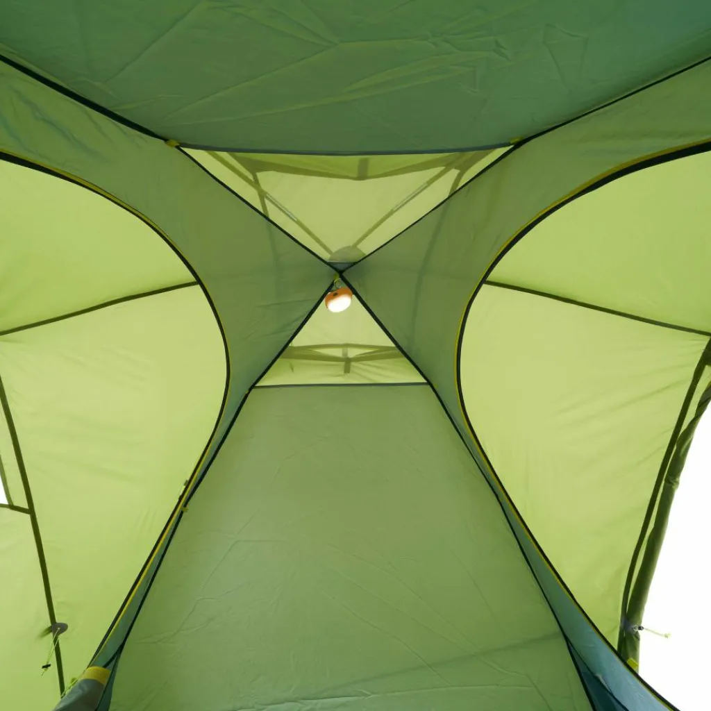 Beim Design des Eclipse III wurde auf viel Komfort Wert gelegt. So finden sich zwei Apsiden mit jeweils einem Eingang – praktisch, um Ausrüstung übersichtlich zu verstauen. Zudem kommt man sich beim Ein- und Ausstieg nicht in die Quere. Der Innenraum ist dank vier Belüftungsöffnungen angenehm klimatisiert. Auch sitzen kannst du im Eclipse ganz bequem durch seine 120 cm Innenhöhe. Natürlich ist das PU-beschichtete Polyester-Material komplett wasserdicht – so lassen sich Regentage gut in diesem Zelt verbringen.