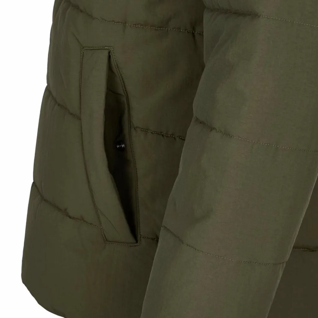 Durch ihr geschmeidiges Taftfutter schlüpfst du auch mit dickem Wollpullover oder Fleecejacke ganz einfach in die Winterjacke hinein. Der Stehkragen und der unterlegte Reißverschluss bilden zusätzliche Barrieren vor frostiger Kälte. Damit auch über den Saum keine Wärme verloren geht, lässt sich dieser mithilfe eines Schnürzuges einstellen. Platz für dein Smartphone und andere Kleinigkeiten bieten dir drei Einschubtaschen.