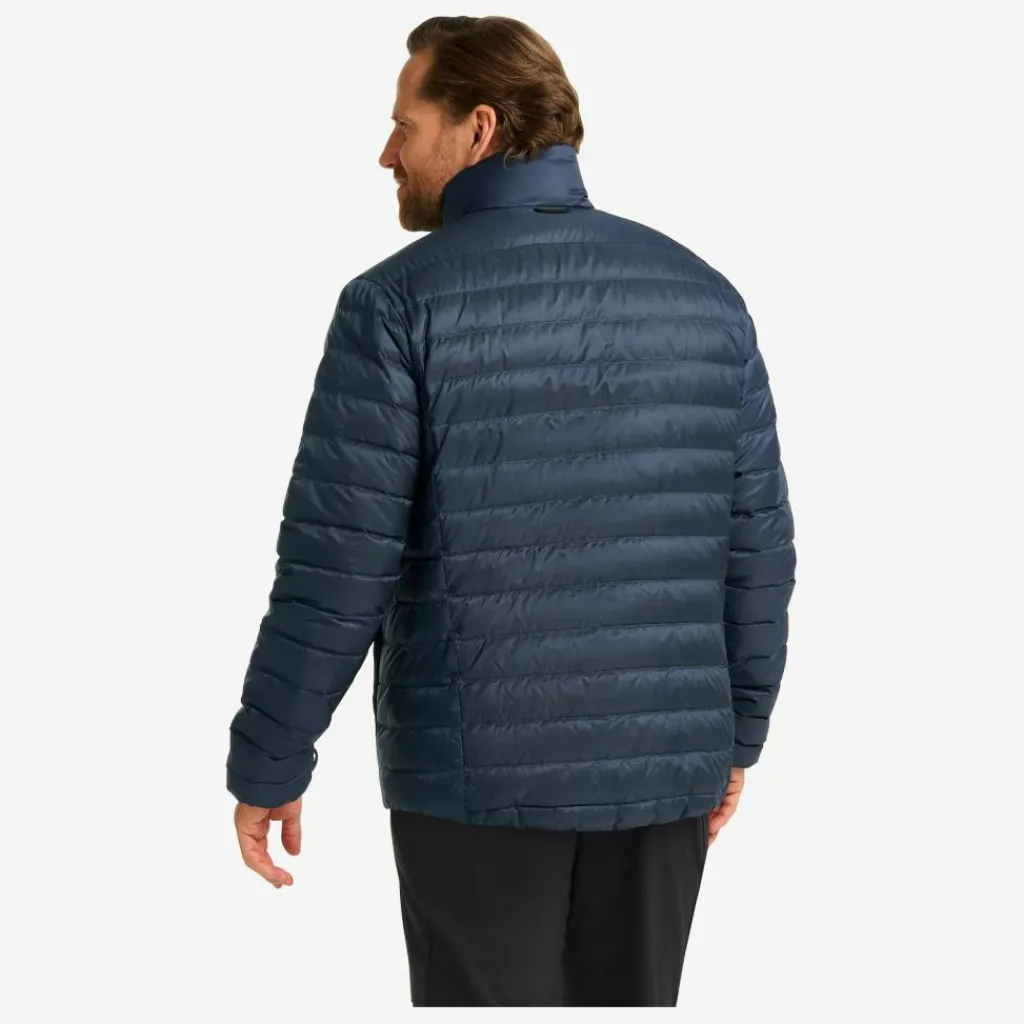 Gegen die Elemente hat die Übergangsjacke auch extra Außenschicht etwas zu bieten. Das recycelte Kunstfasermaterial ist winddicht und stark wasserabweisend. Kälte wird durch eine RDS-zertifizierte Daunenisolation Einhalt geboten. Durch die schmalen Kammern wird deine Körperwärme zudem besondern effektiv gespeichert. So bist du auf winterliche Wandertouren bis hin zu frostigen Alltagsabenteuern auf wechselhaftes Wetter eingestellt.
