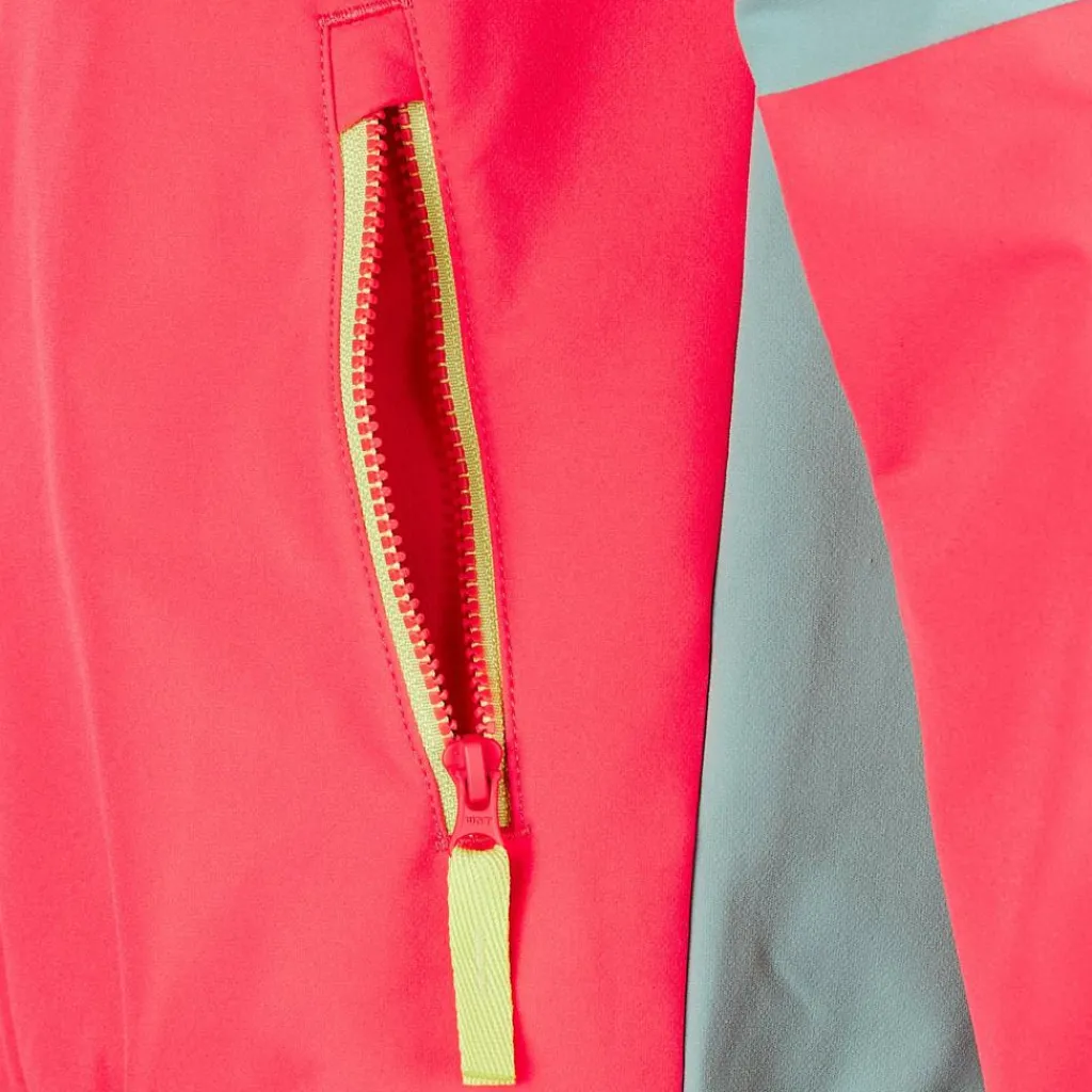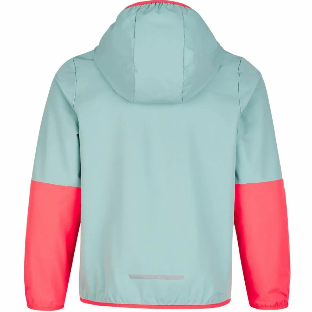 Dank der Elastikeinfassungen in Kapuze und Ärmelbündchen bleibt die Jacke beim Toben dort, wo sie sein soll. Extra Schutz vor frischem Wind bieten der unterlegte Front-RV und der hohe Kragen. Für Stauraum sorgen zwei Reißverschlusstaschen und bewahrenkleine Kostbarkeiten sicher auf. Harmonische Farben machen die Softshell auch optisch zu einem echten Highlight.