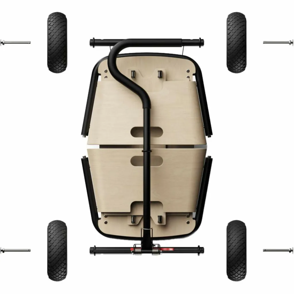 Kinder lassen sich nicht von Waldwegen, Sand oder Matsch abschrecken – im Gegenteil! Damit sich der Bollerwagen auch abseits asphaltierter Straßen entspannt ziehen lässt, ist der Jipfish mit großen luftgefüllten Gummireifen und doppelten Kugellagern ausgestattet. So sind auch viel Gewicht oder Unebenheiten im Untergrund kein Problem. Der pulverbeschichtete Stahlrahmen bietet dabei eine maximale Traglast von 80 kg – mehr als genug für zwei Kinder, Getränkekisten oder Campingmöbel.