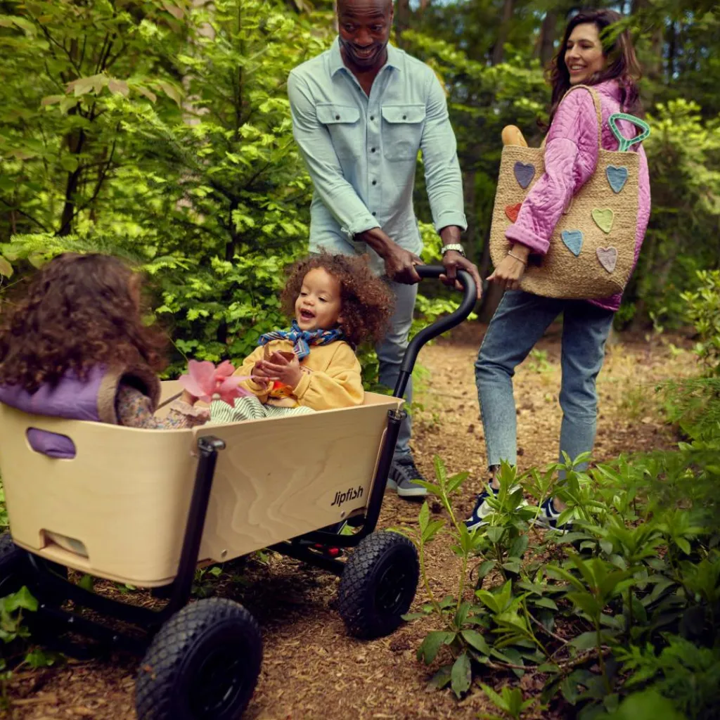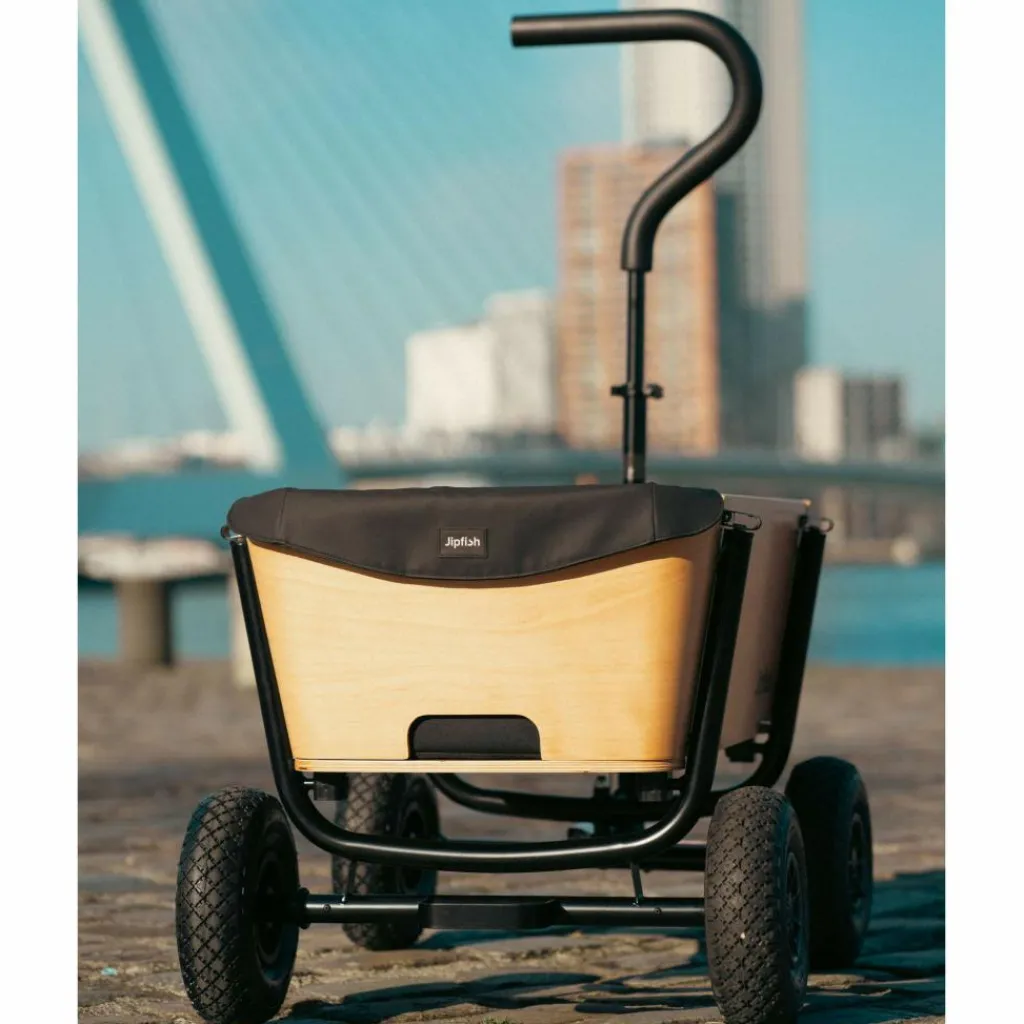 Familienzeit mit Stil: Der Jipfish fällt mit seinem modernen Design aus Naturholz sofort ins Auge. Auch funktional überzeugt der Bollerwagen auf ganzer Linie und punktet mit sekundenschnellem Aufbau.