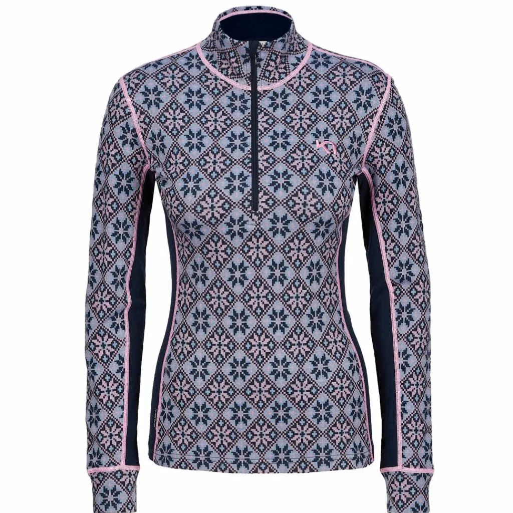 Für wohltuende Abkühlung kannst du den halblangen Front-RV ganz nach Bedarf öffnen. Der hohe Stehkragen sorgt für wohlige Wärme am Hals, wenn es wieder auf die Piste geht, während die Flatlock-Nähte unangenehme Reibung verhindern. Nicht zu vergessen das stilvolle Muster, das dem funktionellen Shirt eine supertolle Optik verleiht.