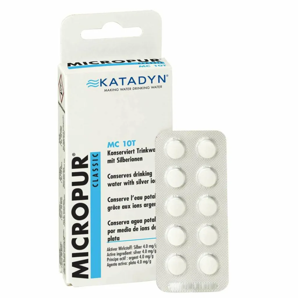 Die einfache und sichere Wasserkonservierung bei klarem Wasser – in Tablettenform (z. B. für Kleinbehälter, Flaschen etc.). Ideal zum Frischhalten von Trinkwasser in den Ferien und auf Reisen.