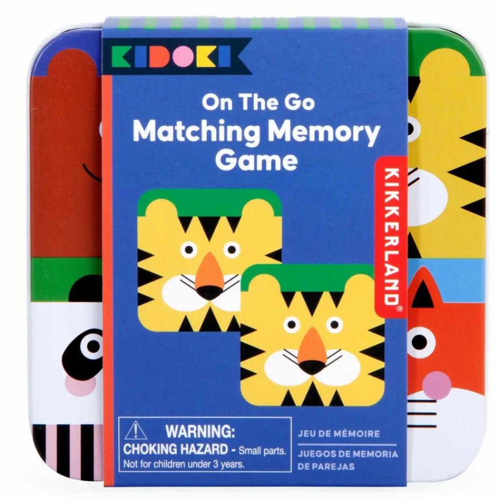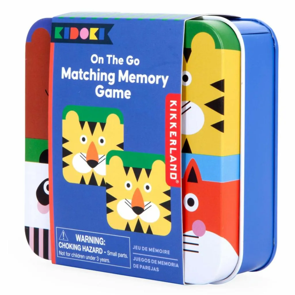 Das richtige Paar finden, auch unterwegs in der Bahn oder auf der Wiese im Park. Das Matching Memory Game kommt in einer praktischen Metalldose und kann so problemlos überall mit hingenommen werden.