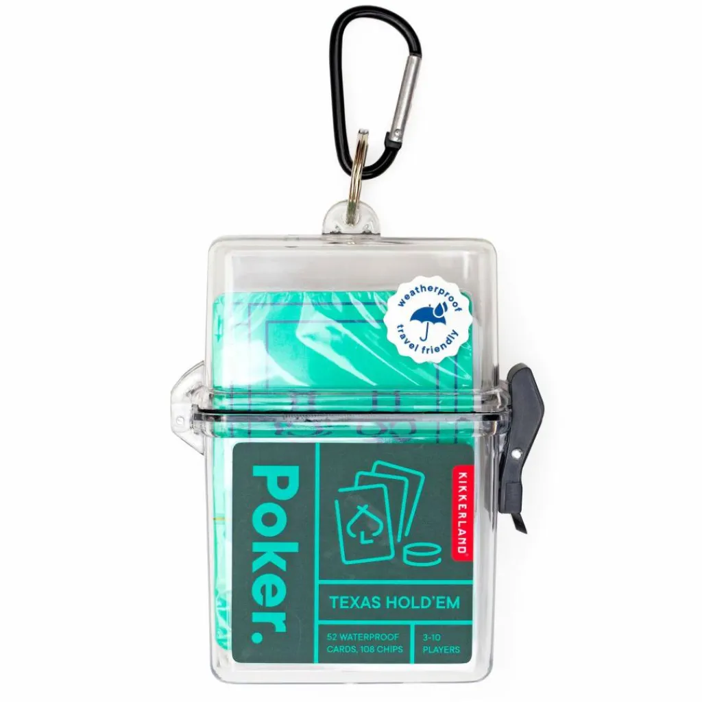 Wer in der Natur nicht auf eine kleine Pokerrunde verzichten möchte, ist mit diesem Poker-Spiel gut ausgerüstet. Praktisch: Alle Utensilien fürs Pokern kommen in einer wasserdichten Box mit Karabiner.