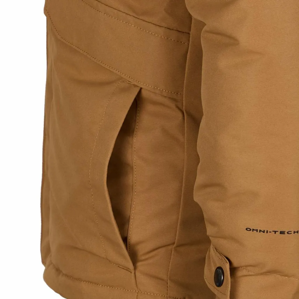 Das wind- und wasserdichte, atmungsaktive Außenmaterial hält Regen, Schnee und kalten Wind ab. Durch die verstellbaren Ärmelbündchen mit innen liegender Rippstrickstulpe können auch an diesen Stellen weder Nässe noch Kälte eindringen. Die Kapuze mit abtrennbarem Kunstpelz-Besatz und kuschelweichem Fleece-Futter hält Kopf und Ohren angenehm warm und trocken.