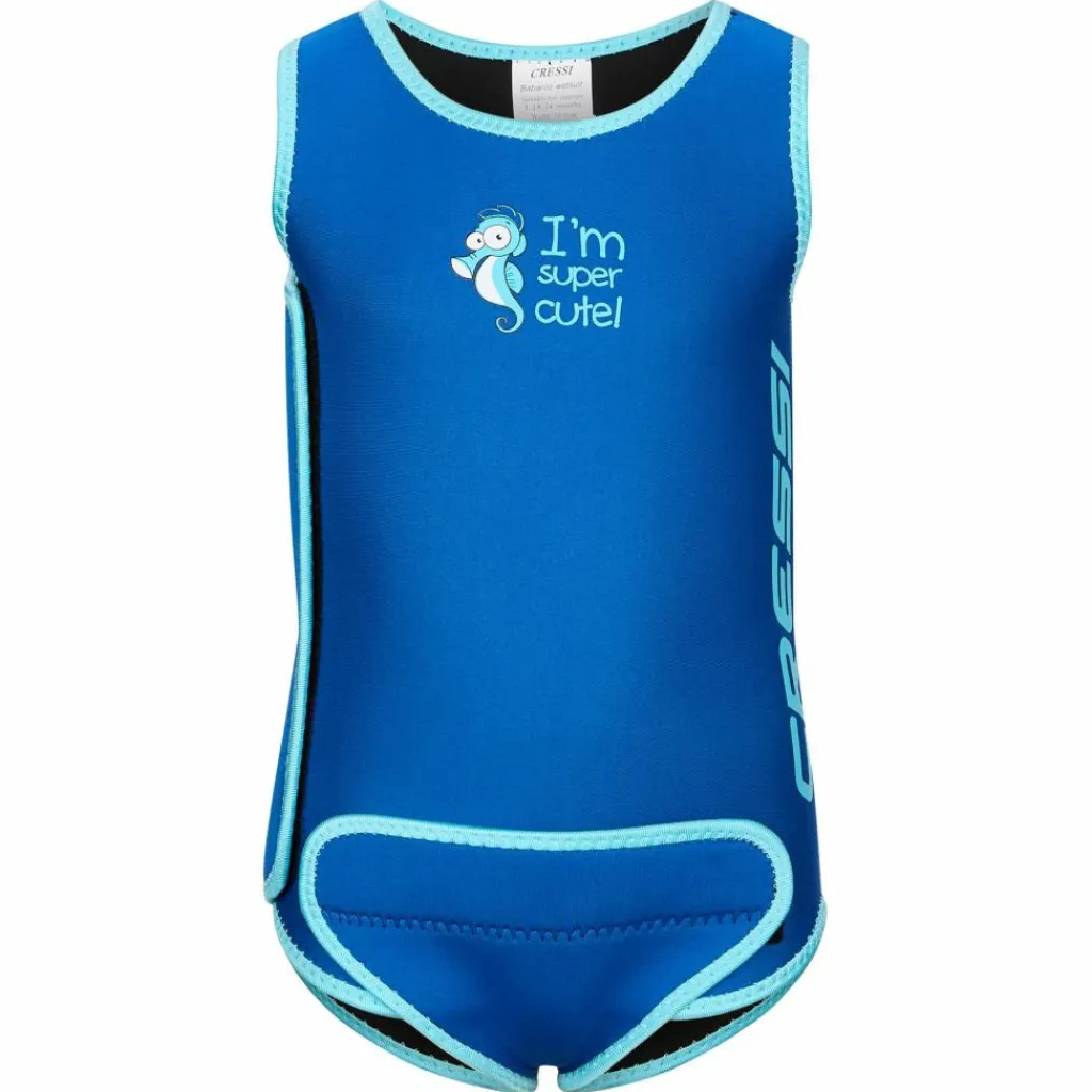 Der niedliche Neoprenanzug für Babys und Kleinkinder schützt vor Sonnenstrahlen (UV 50+) und bietet einen sehr guten Wärmerückhalt beim Planschen im Wasser.