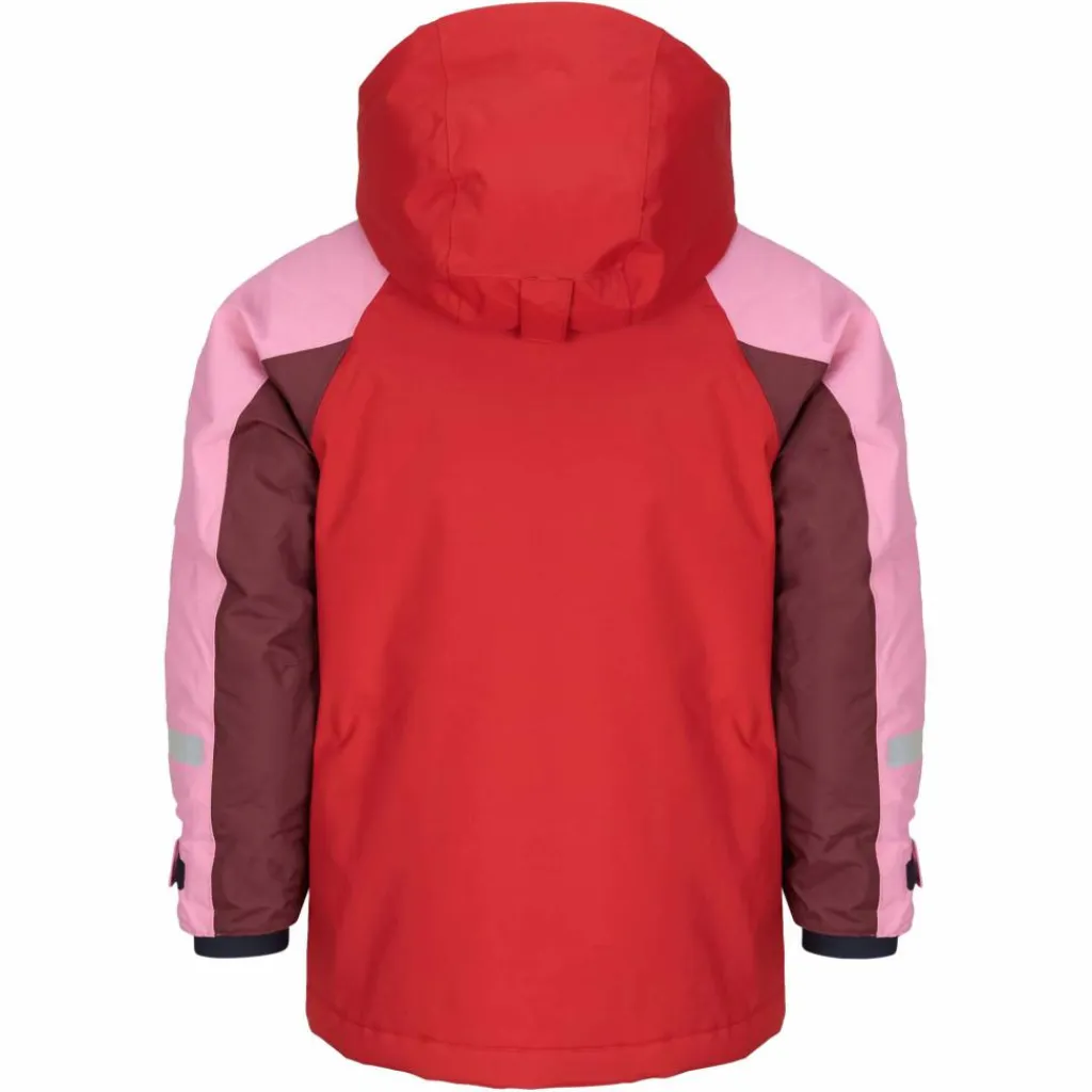 Die Jacke ist mit vielen praktischen Details ausgestattet. So lässt sich die hinten per Klettverschluss einstellbare Kapuze abnehmen. Auch die Ärmelbündchen sind mit Klett versehen. Um es Kälte noch schwerer zu machen, sind sie mit integrierten Stulpen ausgestattet, die dank Daumenschlaufen nicht rutschen. Damit die Handschuhe deiner Kids nicht verloren gehen, können diese an Schlaufen befestigt werden. Für schummrige Lichtverhältnisse ist die Winterjacke mit reflektierenden Designelementen ausgerüstet. Zusätzlich lässt sich an der dafür vorgesehenen Schlaufe in einer RV-Tasche ein Reflektor anbringen.