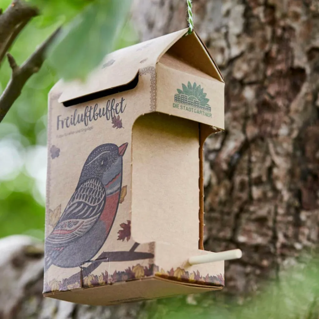 Hier darf nach Lust und Laune geschlemmt werden! Üppig gefüllt mit körnigen Köstlichkeiten ist das Freiluftbuffet eine beliebte Raststätte für alle Vögel in der Umgebung – zum Erholen und Krafttanken.