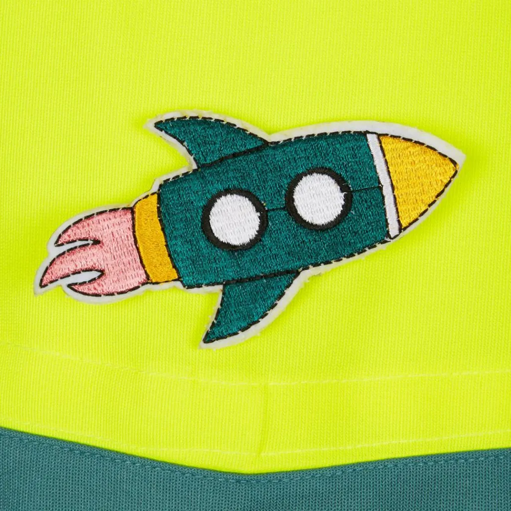 Praktisch: Das Cape ist waschbar, wenn du den Akku vorab herausnimmst. Passt fast immer und ist fix angezogen: Dein Kind kann das High Visibility Cape sowohl über einer Jacke als auch ohne eine Jacke tragen. Rakete, Regenbogen und Co. lassen sich übrigens abnehmen und tauschen. Diese hübschen Patches sind mit Klett ausgestattet.
