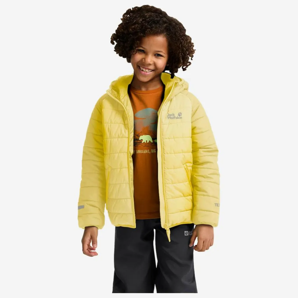 Das Außenmaterial der Jacke besteht nämlich nicht nur aus recycelter Kunstfaser, sondern ist zudem winddicht und wasserabweisend. Somit sind deine Kinder vor Nieselregen und kalte Böen während des Schulausflugs abgeschirmt. Eine Kunstfaserwattierung aus Recyclingmaterial spendet auch dann noch Wärme, wenn diese einmal feucht geworden ist. Energiegeladene Abenteuer sind dank des atmungsaktiven Gewebes kein Problem. Wenn es voller Tatendrang vorangeht, sorgt dieses für ein ausgeglichenes Trageklima.