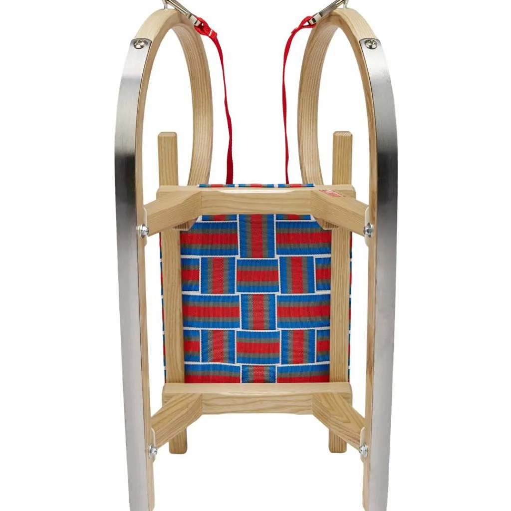 In Sachen Verarbeitung und Materialien steht der Schneckenrodel “den Großen” von Kathrein in nichts nach: solides, glatt geschliffenes Eschenholz, an den Kufen mit 30 mm breiten Stahlschienen beschlagen. Durch den leichten Neigungswinkel der Kufen (10°) fährt der Kinderrodel hervorragend in der Spur und hat einen sehr sicheren Geradeauslauf. Die Sitzfläche aus buntem Nylon-Gurtband ist 25 x 24 cm groß.