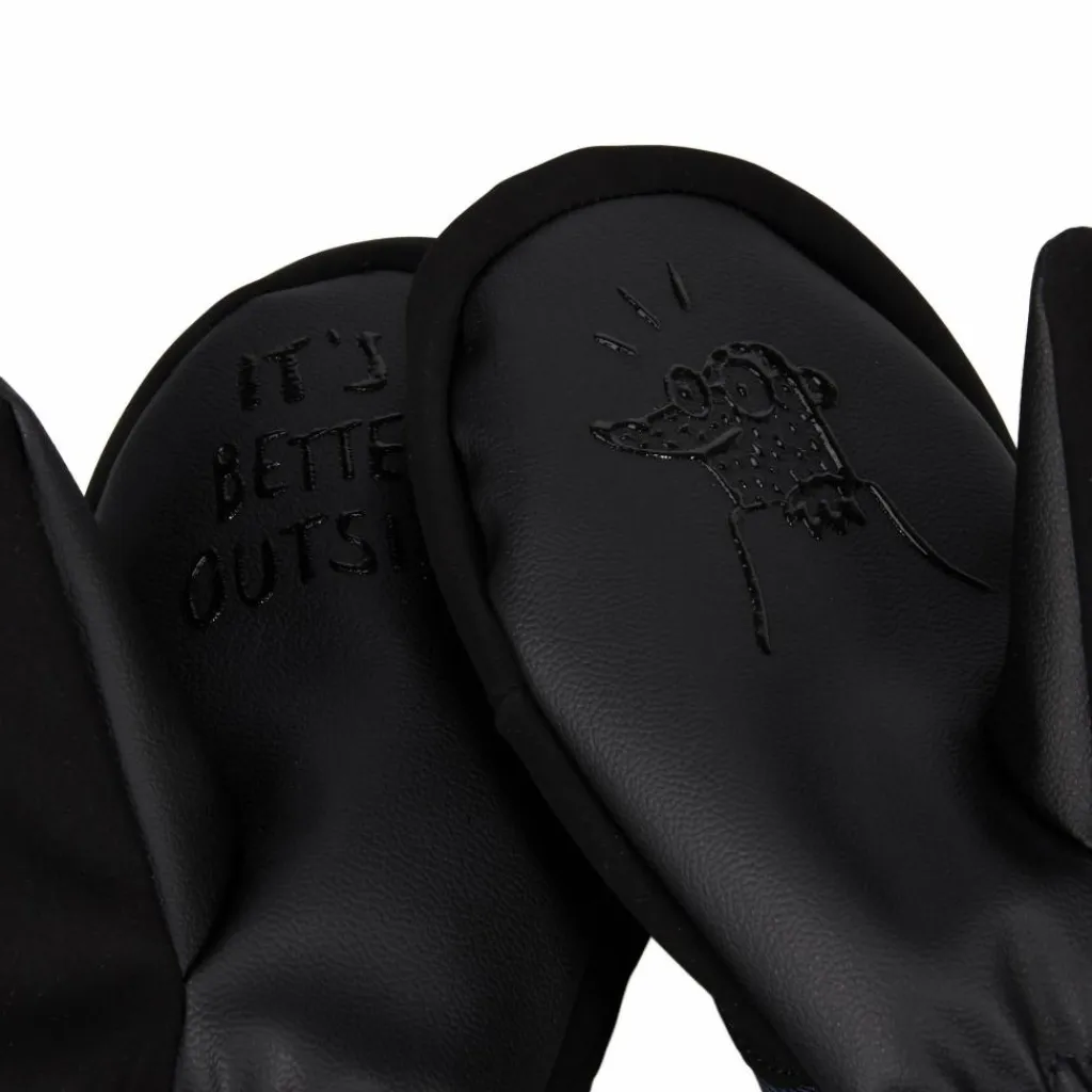 Das abriebfeste Außenmaterial nimmt es mit Wind und Nässe auf und lässt diesen keine Chance. Zusätzlich hält die DWR-Ausrüstung Feuchtigkeit davon ab, ins Material einzudringen. Im Innern sorgt das weiche, wärmende Fleece für angenehmes Tragegefühl, während die hochwertige Isolierung eisiger Kälte trotzt. So genießen deine Kinder beim winterlichen Einsatz in den Statement wohlig warmen Komfort. Und über all dem wacht die kleine süße Eule – und ein frecher Maulwurf mit Grip(s).