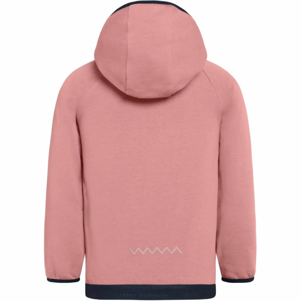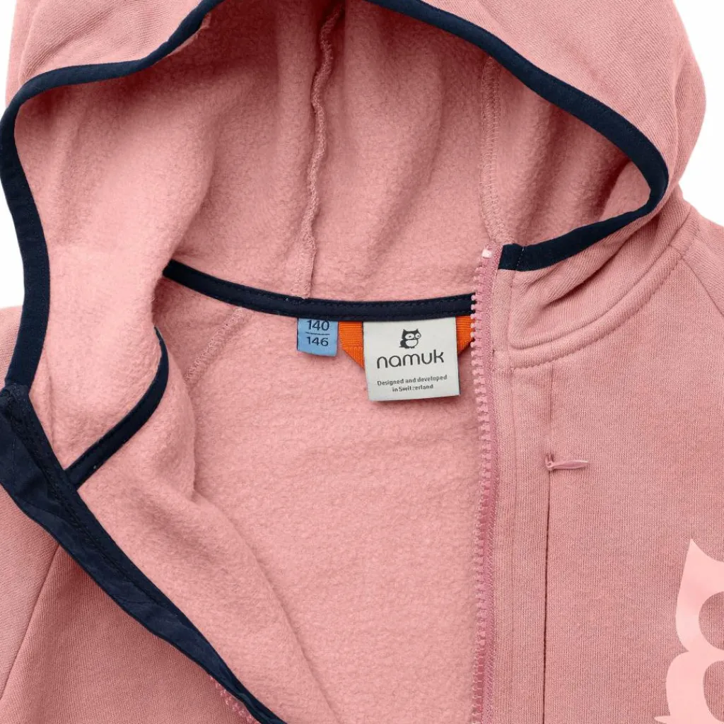 Die Kapuzenjacke ist aus einem Mix aus weicher Bio-Baumwolle und abriebfestem Cordura hergestellt. So hält der Hoodie auch mal einen kleinen Sturz vom Drahtesel oder wilde Erkundungen im Gestrüpp aus. Das Material ist angenehm elastisch, sodass deine Kinder in ihren Bewegungen nicht eingeschränkt werden. Die Innenseite ist kuschelig weich aufgebürstet.