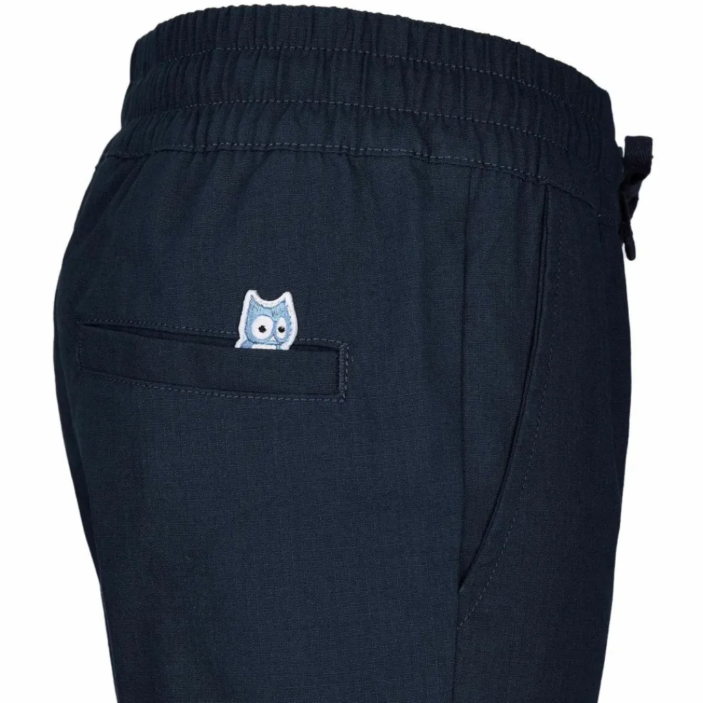 Der elastische Bund und Beinabschlüsse sorgen für guten und sicheren Sitz beim Toben und auf Entdeckungstouren. An den unteren Beinen hat die Hose ein stylishes Muster, das nicht nur toll aussieht, denn es ist ein reflektierendes Designelement – ideal, wenn sich ein ereignisreicher Tag dem Ende neigt. In den beiden Einschubtaschen finden wertvolle Fundstücke einen Platz, während es sich in der Gesäßtasche die kleine Eule gemütlich gemacht hat.