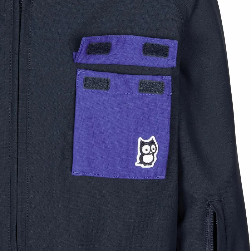 Neben der warmen Kapuze ist der tolle Schneeanzug mit jeder Menge Komfort versehen. So ermöglicht der horizontale RV ein schnelles An- und Ausziehen. Die verstaubaren Hosenträger sowie die einstellbaren Beinabschlüsse sorgen für guten Sitz. Und versehen mit diversen Taschen – beispielsweise die Skipass-Tasche am Ärmel –, die obendrein über viele praktische Features verfügen. So gibt es genug Stauraum und kleine Dinge zu entdecken – von einer Extra-Mülltasche über Schnullerband bis hin zur kleinen süßen Eule.