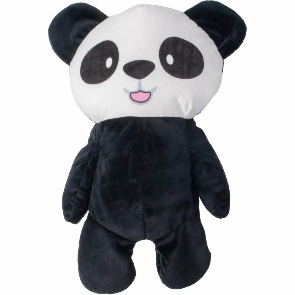 Das Kissen ist mit Mikroperlen gefüllt und mit einem weichen Bezug aus Fleece versehen. Dadurch passt es sich hervorragend jeder Kopfform an. Die seitlichen Stützen verhindern ein Abknicken des Kopfes, sodass auch lange Flüge sowie Fahrten mit Bus, Bahn oder Auto komfortabel überbrückt werden können. Nach dem Aufwachen kann das Nackenkissen in ein Kuscheltier verwandelt werden. Dazu wird der rückseitige Reißverschluss geöffnet, die Pandahülle ausgebreitet und die Mikroperlen mit etwas Geschick (also möglichst durch die Eltern) aus dem Nackenhörnchen in den Panda geschüttelt. Für den Mittagsschlaf lässt sich dieser Vorgang umkehren, um das Kissen erneut als Nackenhörnchen zu nutzen.
