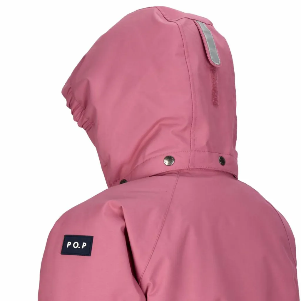 Der Schneeanzug ist mit vielen liebevollen und kindgerechten Details versehen. Die Kapuze ist nicht nur teilelastisch und lässt sich hinten mit einem Klettverschluss anpassen. Sie lässt sich dank Druckknöpfen auch ganz einfach abnehmen und löst sich schnell, falls die Kiddies mal hängenbleiben. Der Kragen und die Ärmelabschlüsse sowie ein Kinnschutz am RV sind mit kuschligem Fleece versehen und sorgen für weiche Komfort. Kälte und Wind werden vom unterlegten und mit einer Windschutzleiste ausgestatteten Front-RV in Schach gehalten. Um den ganz Kleinen das An- und Ausziehen zu erleichtern, ist der Anzug bis Größe 110 mit einem längeren Reißverschluss ausgerüstet.