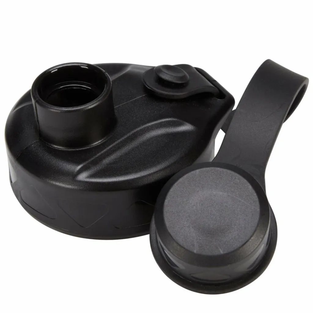 Das Tritan Material nimmt keinen Geruch oder Geschmack an und ist 100 % BPA frei. Außerdem ist es leicht, bruchsicher und spülmaschinenfest. Der Trinkverschluss wird mit einer Kappe verschraubt, die zusätzlich am Deckel gegen Verlust gesichert ist. Die Deckelsicherung dient gleichzeitig als Schlaufe, um die Trinkflasche am Rucksack zu befestigen oder zu tragen.