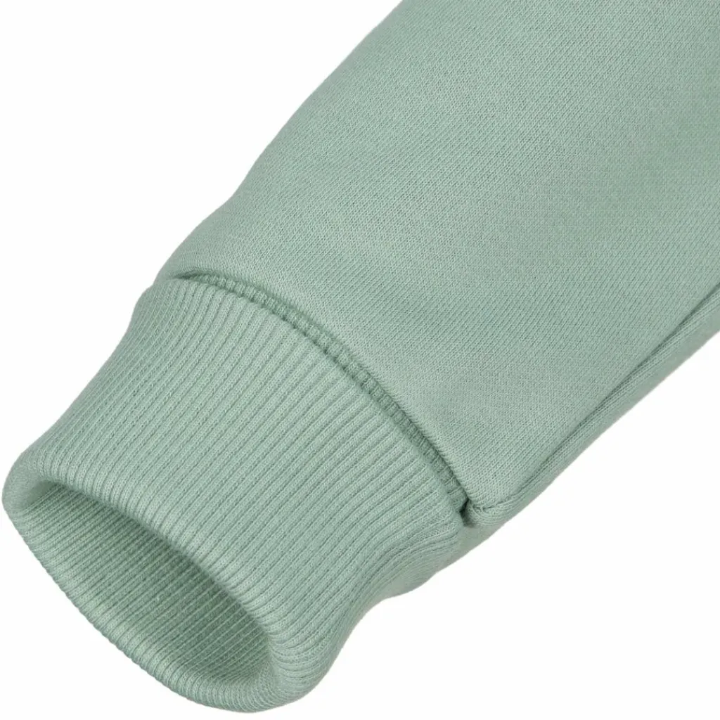 Der Kapuzenpullover besteht aus einer angenehm weichen Mischung aus Bio-Baumwolle und recyceltem Polyester. Dank seines elastischen Materials und seines bequemen Schnitts mit überschnittenen Ärmeln macht der Pulli auch wildes Toben problemlos mit. Weht deinen Kids ein kühler Wind um die Ohren, sorgt die Kapuze für Schutz. Die breiten Rippstrickbündchen an den Ärmeln und am Saum sorgen für einen guten Sitz und halten die Wärme drinnen. Die langen Ärmelbündchen lassen sich umschlagen und später in voller Länge tragen, wenn die Kids schon wieder ein Stück gewachsen sind. Ein bequemer Hoodie für spannende Abenteuer in der Natur und den aktiven Alltag in der Stadt!