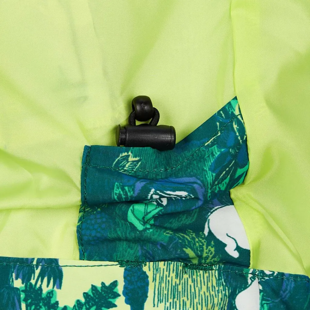 Die abtrennbare Kapuze bietet zusätzlichen Schutz bei plötzlichen Schauern oder kaltem Wind. Dank seitlicher Elastik-Einsätze sitzt sie bequem und sicher auf dem Kopf. Der Schnürzug im Saum und die elastischen Ärmelbündchen sorgen für einen guten Sitz und kalten kalte Zugluft draußen. In den beiden Taschen lassen sich wertvolle Fundstücke wie Tannenzapfen, Stöckchen und Steine nach Hause transportieren.