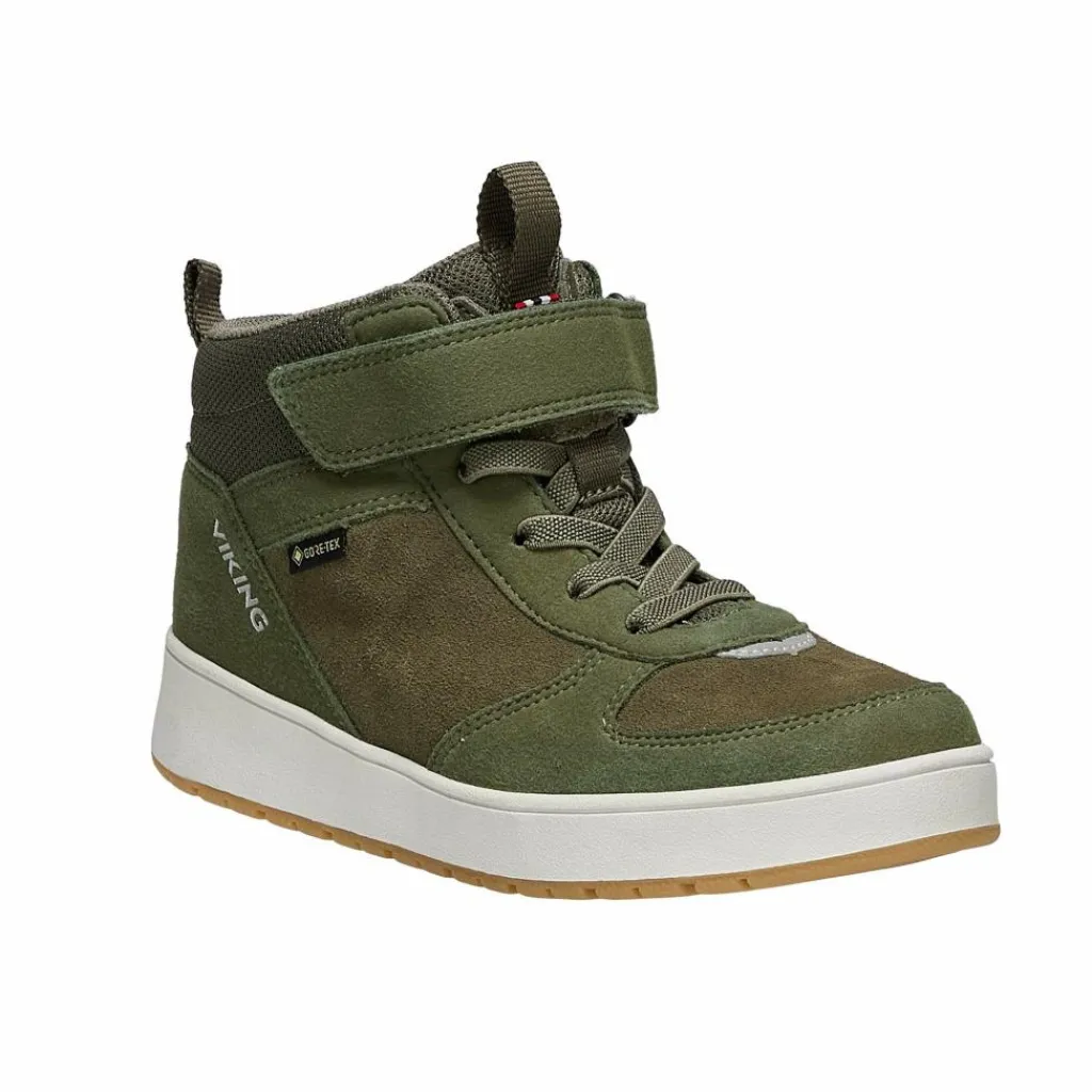 Als Obermaterial kommt eine Mischung aus Veloursleder und synthetischem Mesh-Gewebe zum Einsatz. Während ersteres für die nötige Robustheit sorgt, ist dem letzteren das angenehm niedrige Gewicht zu verdanken. Für Wetterschutz ist beim hochwertigen wie lässigen Sneaker dank Gore-Tex Membran ebenfalls gesorgt, so bleiben Kinderfüße auch an Regentagen trocken!