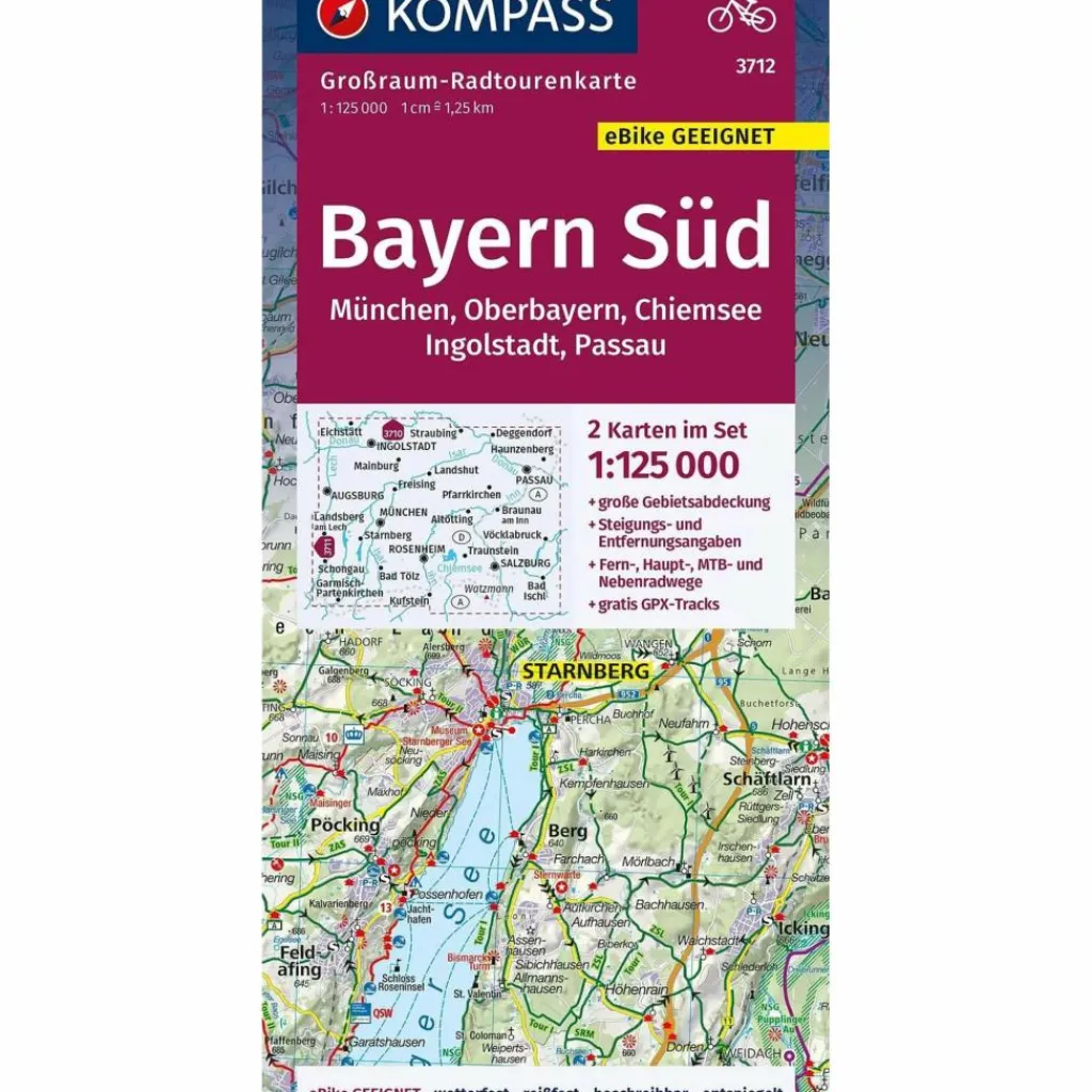 KOMPASS GROßRAUM-RADTOURENKARTE 3712 BAYERN SÜD, OBERBAYERN^ Fahrradkarten|Fahrradkarten