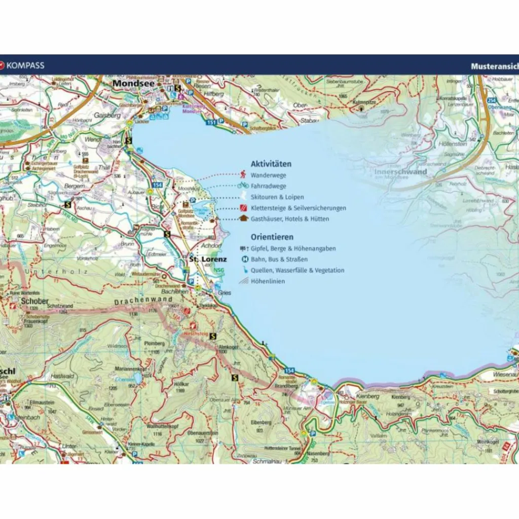 Die präzise Kartografie beinhaltet alle offiziellen Wanderwege mit Namen und Wegnummer (wie Fernwege), Fahrradwege (mit Trails), Klettersteige, Gasthäuser und Hütten, Parkplätze, Bus & Bahn, Skitouren und Loipen, Quellen, Badeplätze und vieles mehr. Das macht die Karte ideal zum Entdecken neuer Ziele, zum Planen von Touren und zum Orientieren unterwegs. Ein intuitives Kartenbild der Landschaft entsteht durch die abgebildete Vegetation, Höhenlinien, Felszeichnung sowie der Schummerung (Schattenwurf) der Berge.