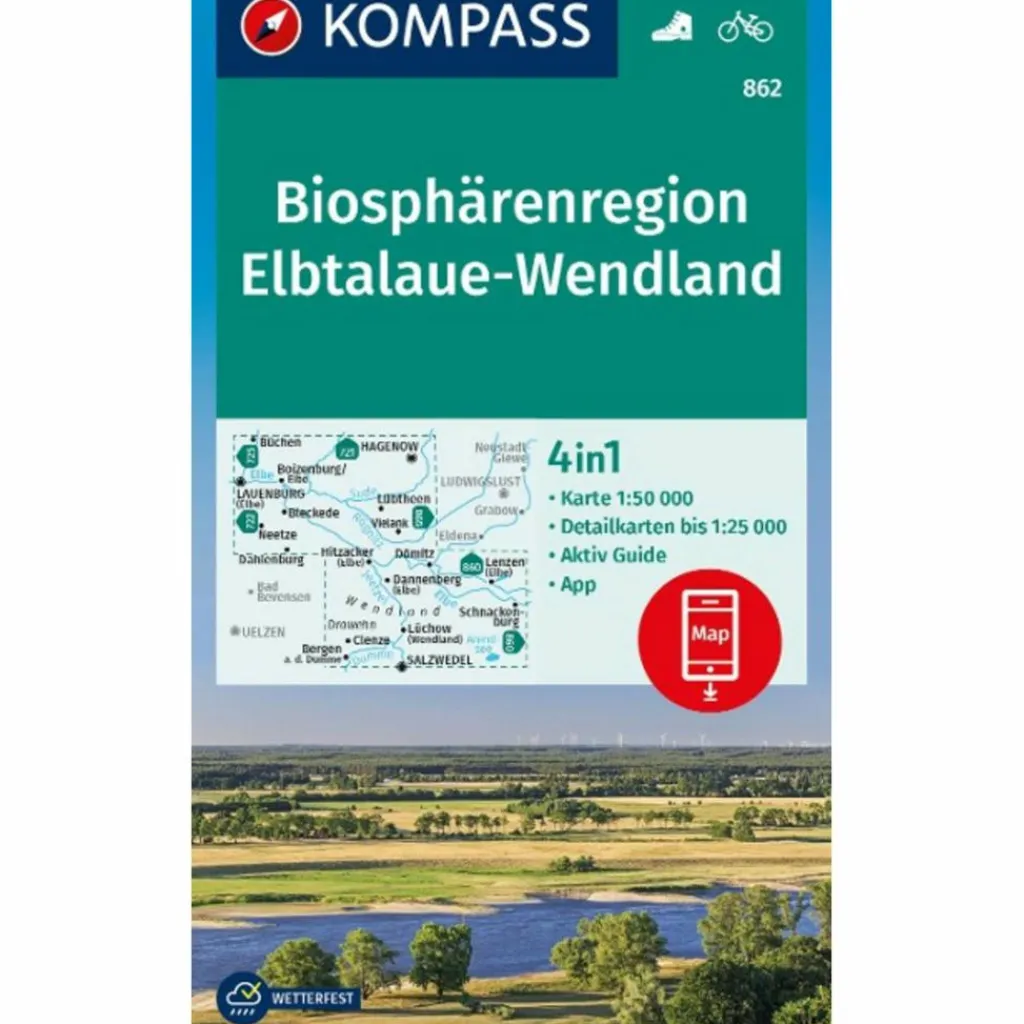 KOMPASS WANDERKARTE 862 BIOSPHÄRENREGION ELBTALAUE-WENDLAND^ Wanderkarten Und Winterkarten|Wanderkarten Und Winterkarten