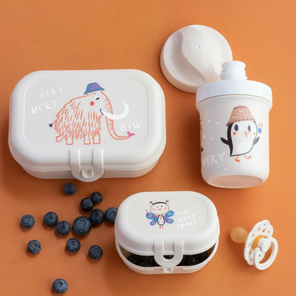 Beeren, Nüsse, Obst oder ein kleines Sandwich: Das Lunchbox-Set bietet Platz für kleine Pausensnacks. Durch die robuste Kunststoffkonstruktion steckt es mühelos die Strapazen von Kita-Tagen und Ausflügen weg.