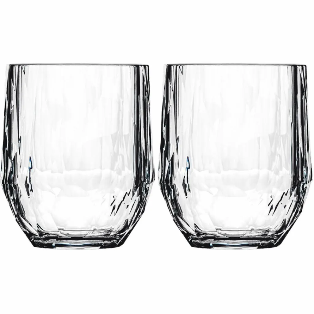 Durch das schöne Facettendesign sind die 200 ml großen Weingläser ein echter Hingucker auf jedem gedeckten Tisch. Das Superglas-Material sorgt dafür, dass die Trinkgläser auch bei häufiger Nutzung ihr Aussehen behalten. Es handelt sich um eine Eigenentwicklung von Koziol, die aus recycelten Sonnenblumen- und Rapsölen hergestellt wurde. Das Material zeichnet sich durch hohe Robustheit und eine leicht isolierende Wirkung aus, sodass der Weißwein länger temperiert bleibt als in herkömmlichen Weingläsern.