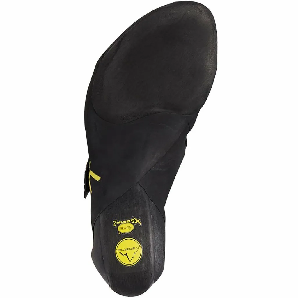 Das neue Konstruktionskonzept des Ondra Comp bietet Kletterern maximalen Grip und Sensibilität: Der Innenschuh ist so gestaltet, dass sich der Fuß ausbreiten kann und eine möglichst große Sohlenfläche in Kontakt mit den Tritten kommt. Die neue, patentierte SenseGrip-Technologie von La Sportiva revolutioniert das Konzept des Boulderschuhs: Die 3,5 mm dicke Vibram XSGrip2-Sohle sowie die Zehenkappe bestehen aus dieser innovativen Technologie, die das Eindringen der Sohle in kleinste Strukturen ermöglicht und für maximalen Grip auf allen Untergründen sorgt. Die stabilisierende Zwischensohle befindet sich ausschließlich unter den Zehen und bietet dort maximale Unterstützung auf kleinsten Tritten.