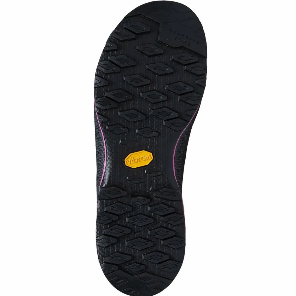 Vor allem, wenn es steil zu werden droht, zeigt sich die besonders griffige Vibram Megagrip Gummi-Profilsohle von ihrer besten Seite. Das liegt vor allem am extrem griffigen Profil, dessen Stollen sich der Rutschrichtung entgegenstellen und so auch auf steilen Untergründen genügend Halt und Traktion bieten, selbstverständlich aber auch an der speziellen Gummimischung. Ein nicht zu unterschätzender Faktor: Der Schuh ist für die vorhandene Stabilität sehr leicht. Gerade wenn der Schuh auch in der Vertikalen mitmuss und du ihn nicht am Wandfuß zurücklassen möchtest sehr interessant.