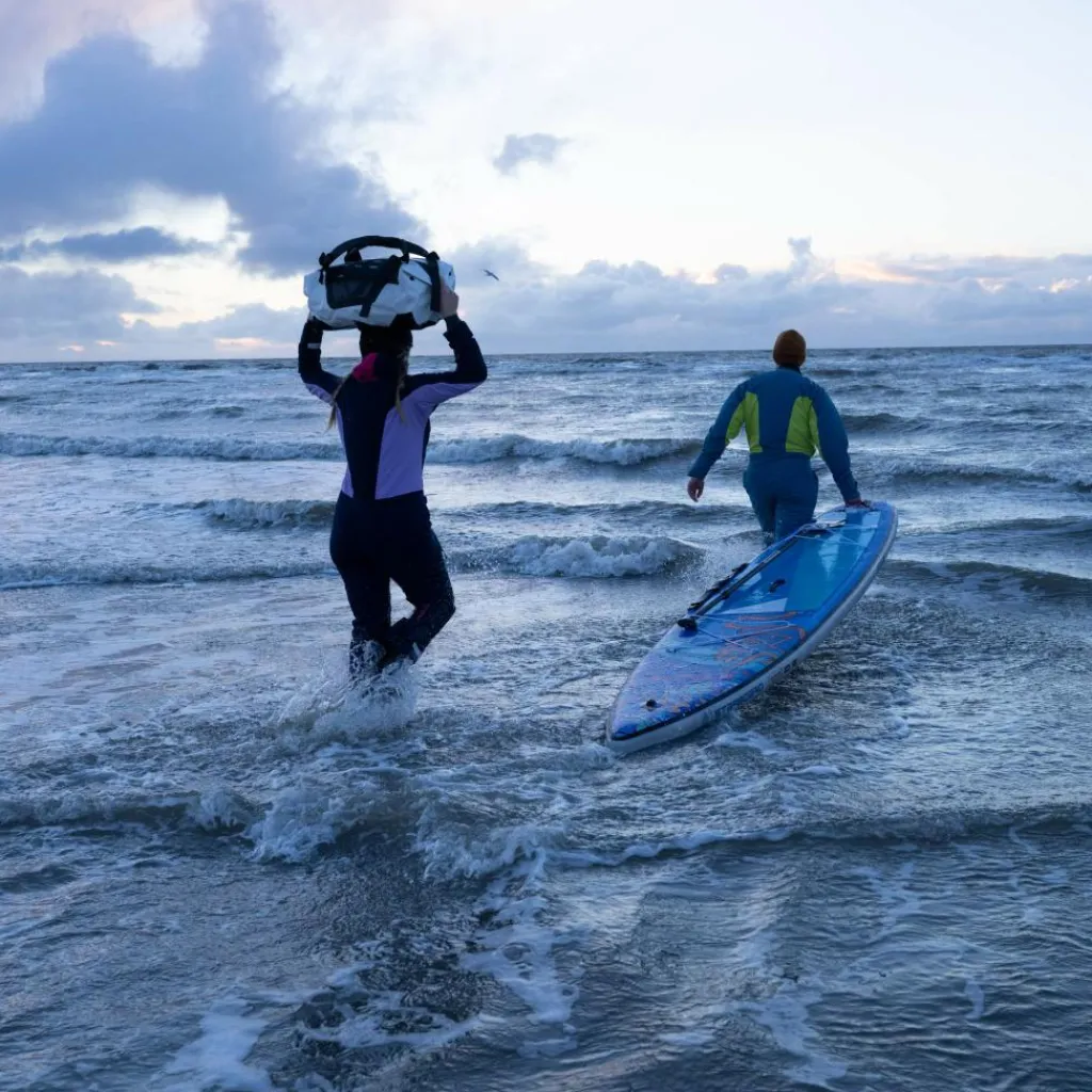 Vielleicht hast du die Banner sogar im letzten Jahr in einer der Globetrotter Filialen gesehen – abgebildet war die Ortlieb Duffle GT, wie sie an der Nordsee im Einsatz war. Die Upcycling-Marke La Virgule aus Frankreich hat die Banner nun in einer Fabrik in Lille reinigen und aufbereiten lassen, sodass das Material anschließend zum exklusiven Laptop Sleeve GT verarbeitet werden konnte.